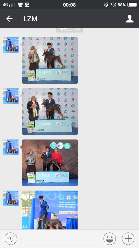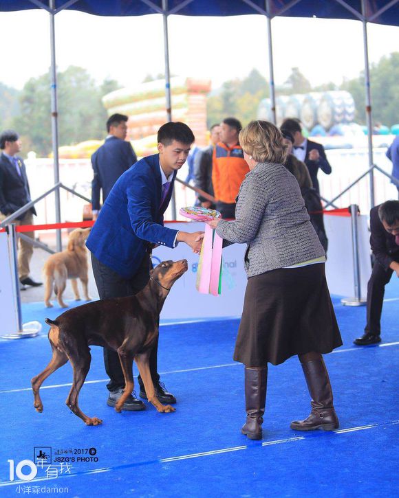 这小哥家的杜宾从小到大,全部都是我家粮,今年赛场上拍的,冠军哦!这就很舒服了。