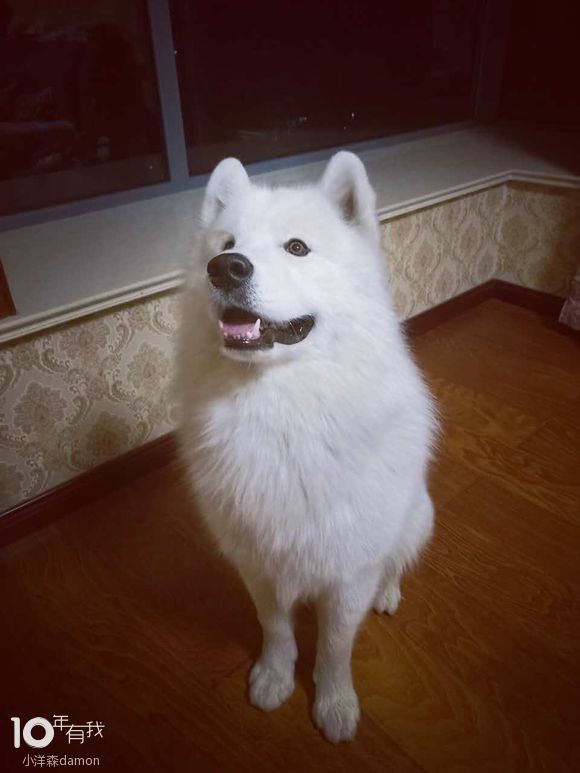 这只萨摩耶吃了我家的粮从此以后就爱上了,主人再也没有给买过别的粮,现在已经长成漂亮的狗狗了