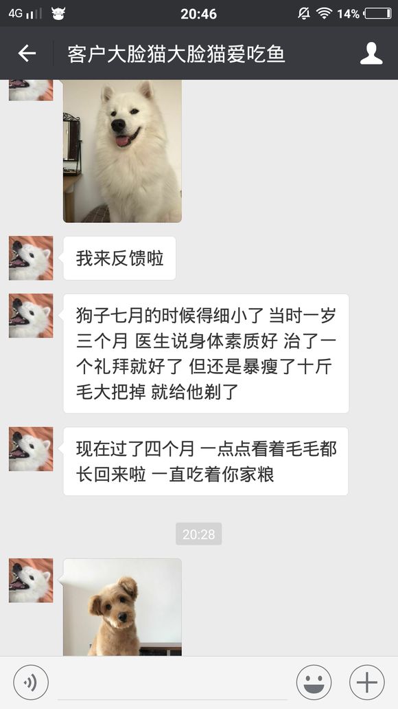 来个美女上图,图片拍的特别好。吃我家狗粮前和吃我家狗粮后对比还是很明显的。看到主人满意就可以了。