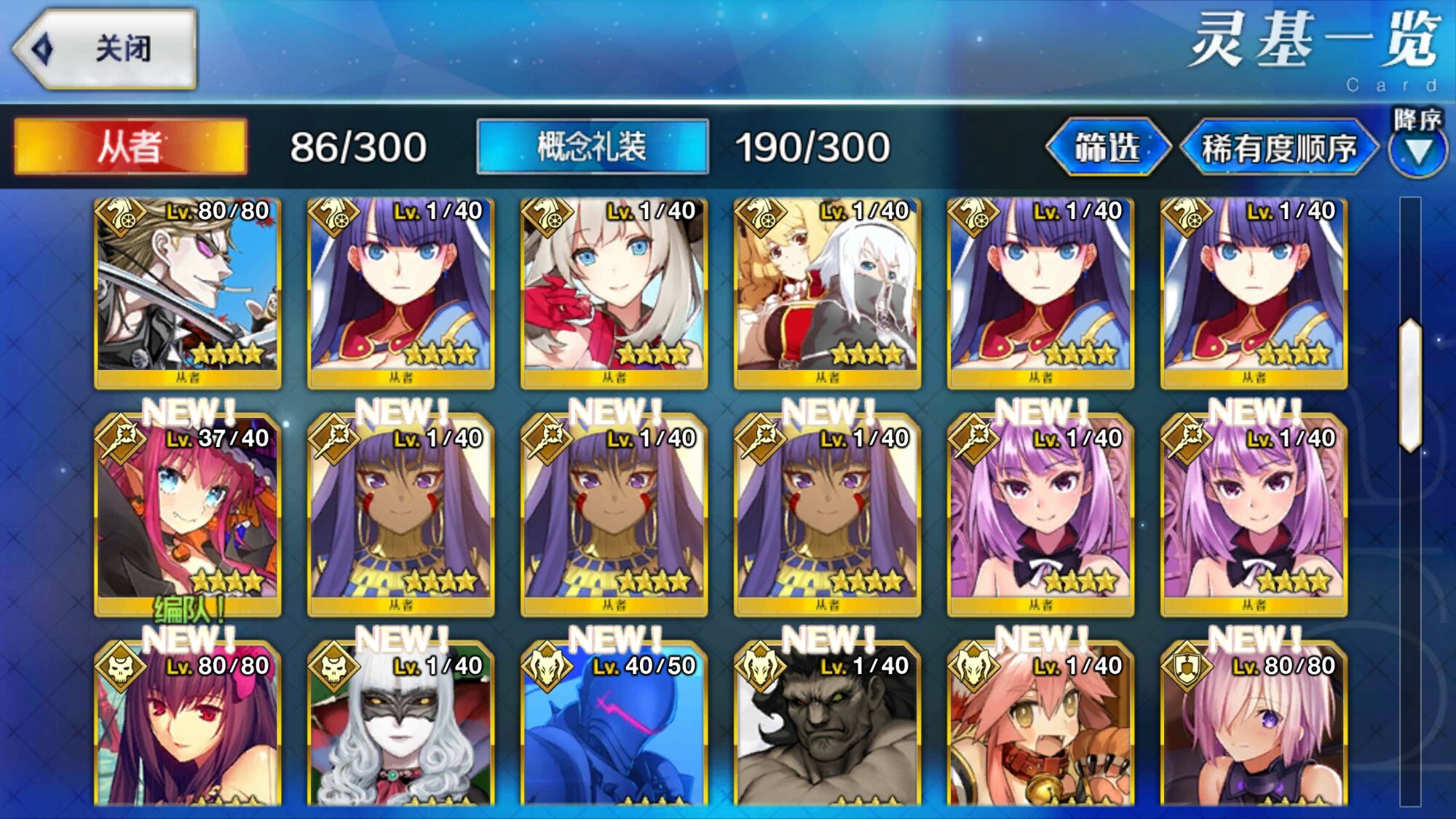 五星英灵就这么几个,脸黑。