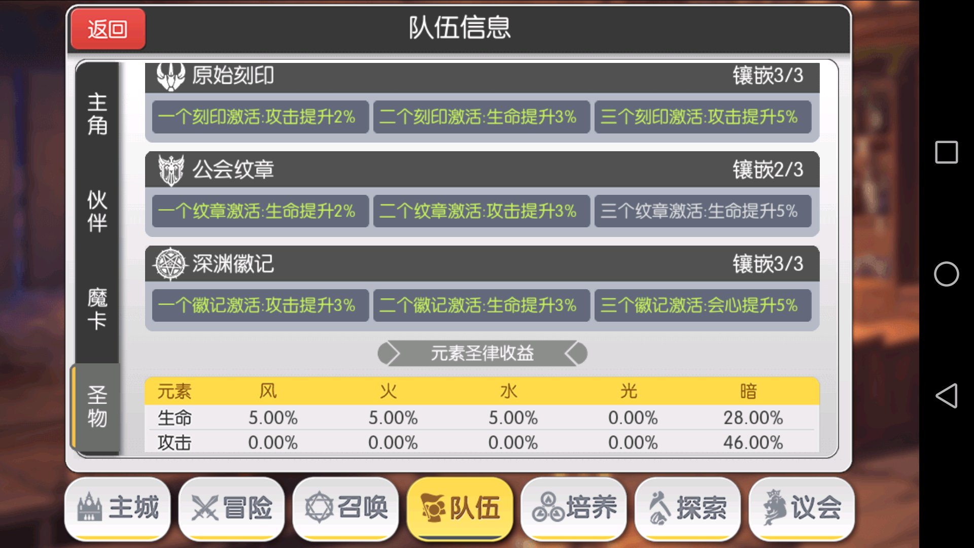 议会加成也很重要,这是同队伍同圣物同魔卡,0级议会和19级议会的差别,以天照为例,攻击相差5000+