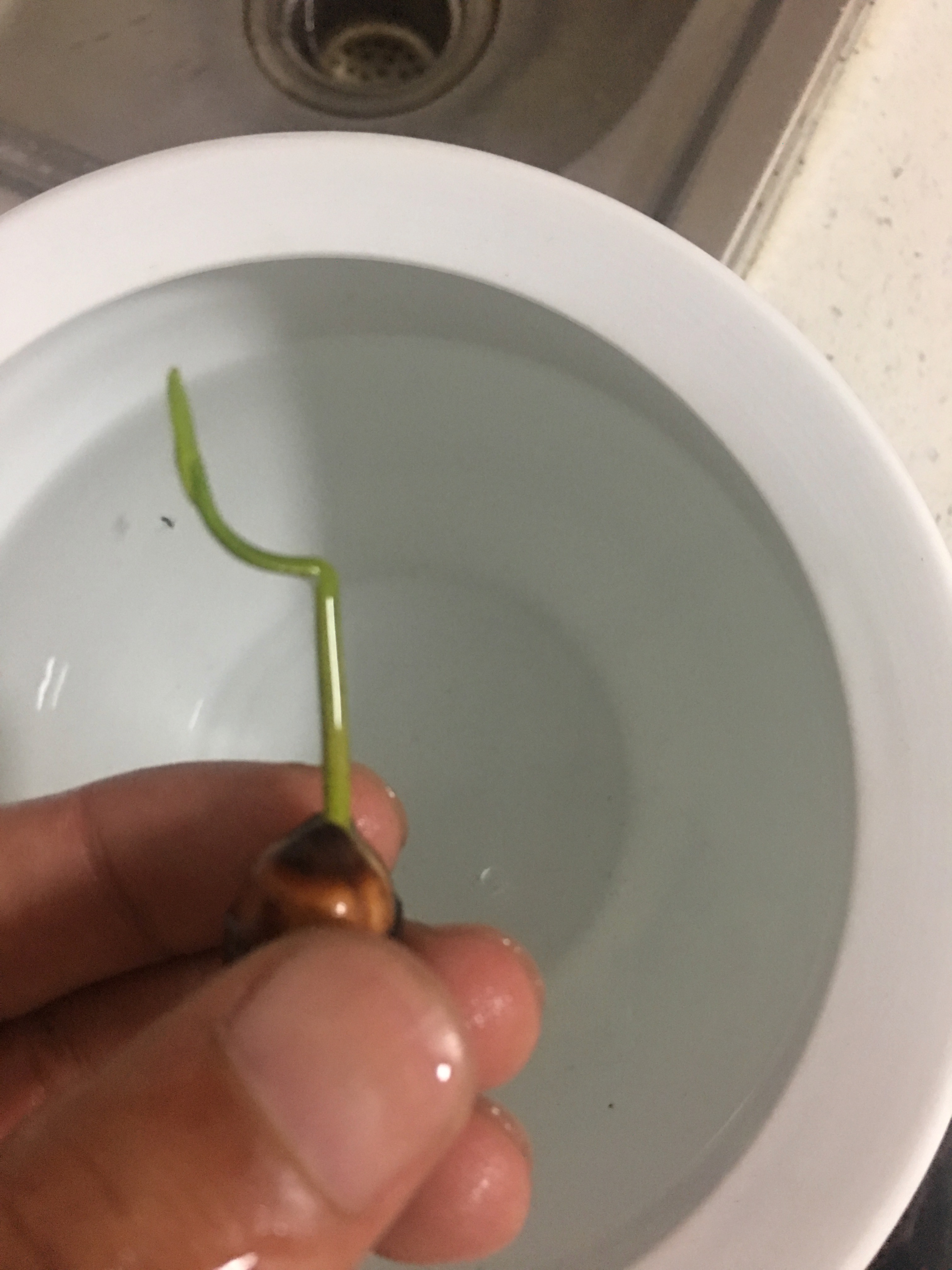 5月2号,泡了两颗种子,大的已经长得长出不小了,小的刚有发芽的迹象。同样的,到了晚上,就长大了很多。