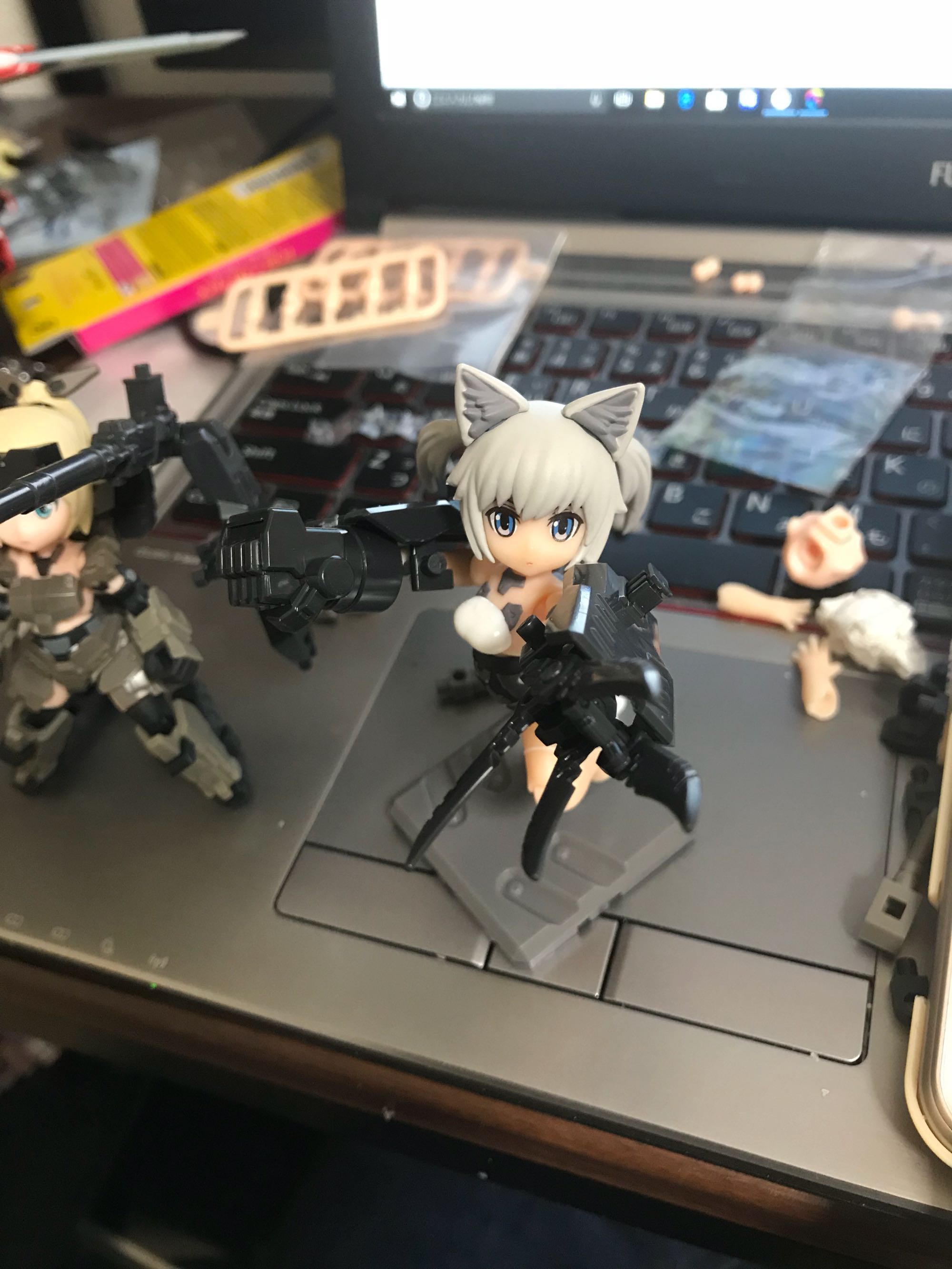 这次每一款都附带了全部四种耳朵/头饰,然后还有两个胸部和第三弹同款脚后支撑用零件(不过零件插肉脚上太违和了并不打算用)以及双马尾,胸部可以自己用一个给轰雷用一个,所以这弹分量是相当给力的。