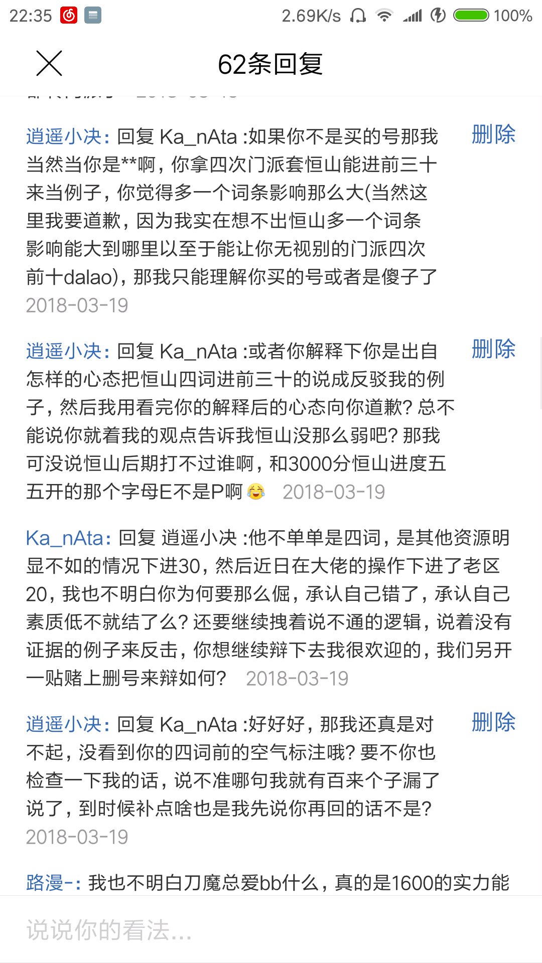 回复 Ka_nAta :反正我个人作为八个月达人老刀魔,并不服这些两三个月就想骑到我头上的恒山小伙砸