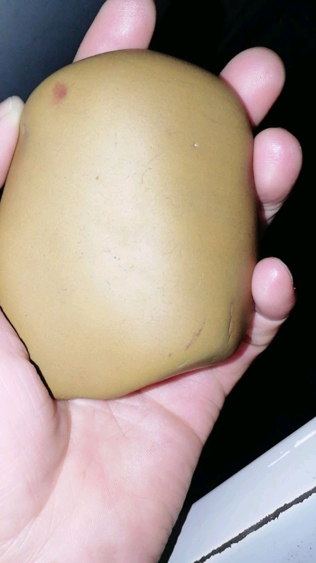 皮子略干,发白,好在干净无杂,有个缺口太模糊实在看不清,打灯如果光圈在1-3公分的话还可以,要是不透的话就一般了,或者开个小窗,这种料皮子稍厚,不知老乡哪里得的此料