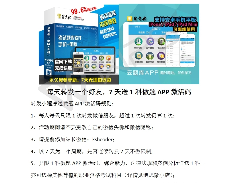 每天转发一个好友,7天送1科做题APP激活码