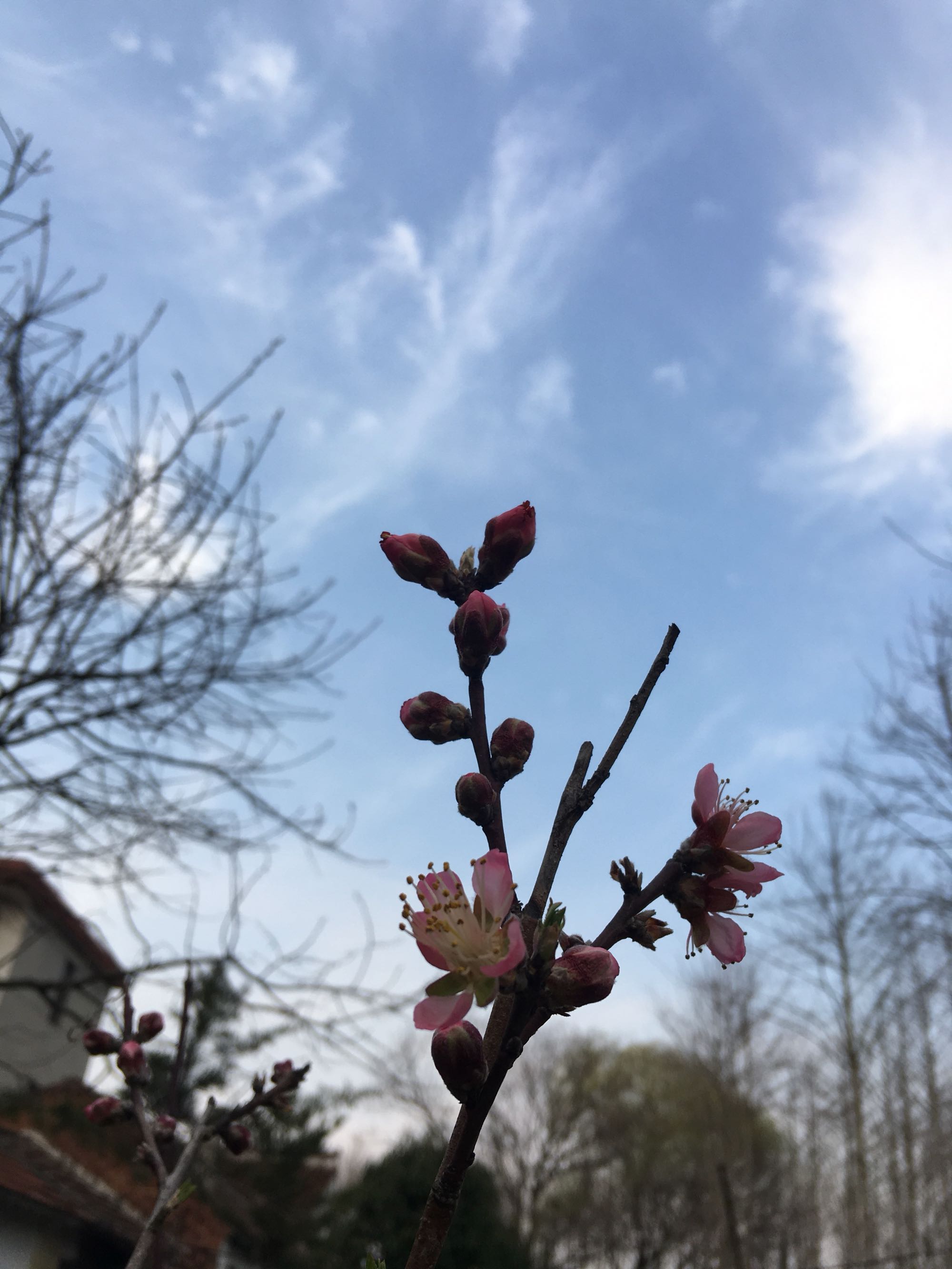 一周前桃花含苞欲放,一周后竞相绽放