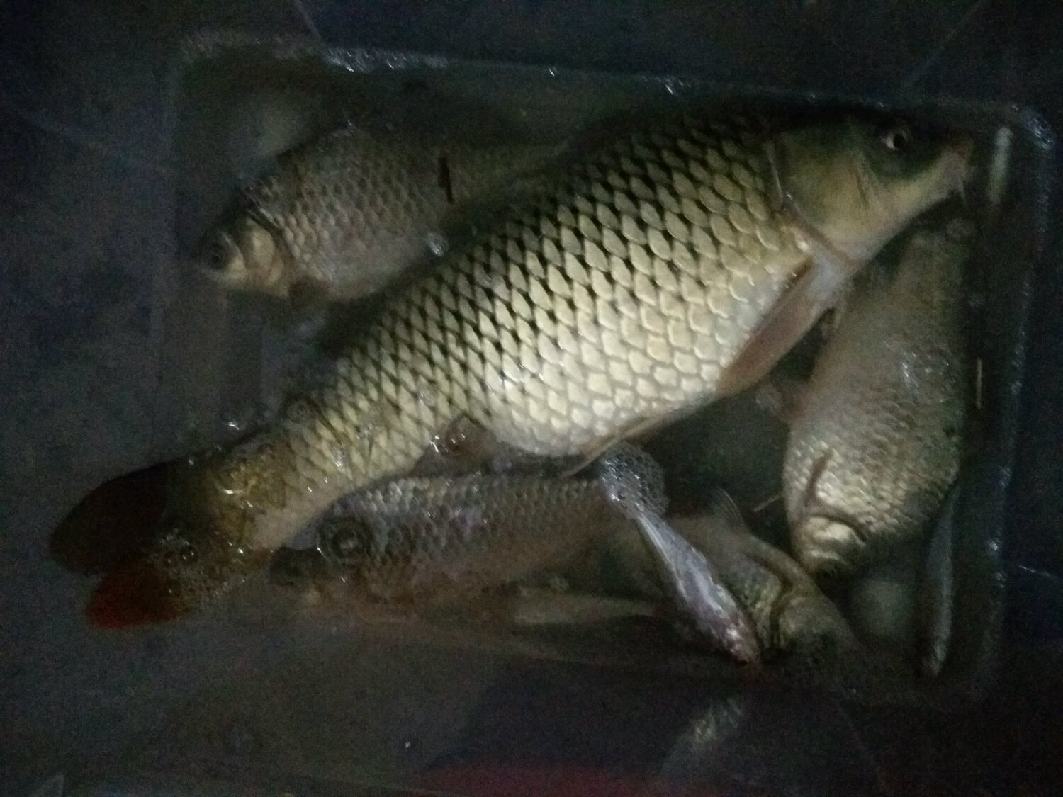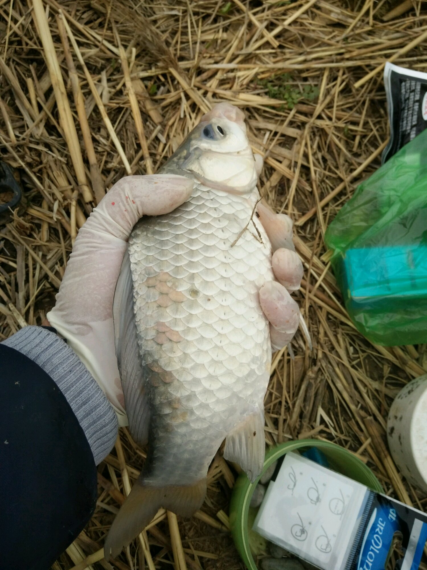 一个上午钓了5条鲫鱼,5条白条,停口了,直到下午4点多,无聊中看见浮漂顶了一下,紧接着开始慢慢横移,提竿,中鱼,感觉有点份量,心想可能中大鲫鱼了,正高兴呢,鱼突然发力,一个大弯弓,鱼线呜呜直响,简直堪比天籁