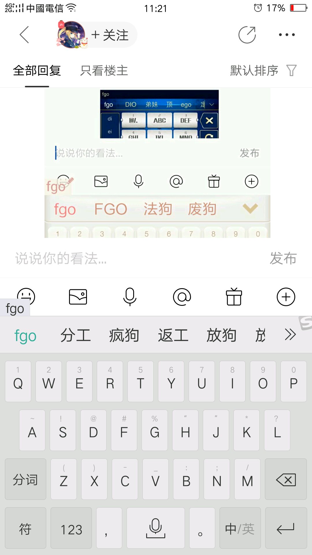 大佬们手机输入法输入fgo出来的第一个是什么呀[滑稽]