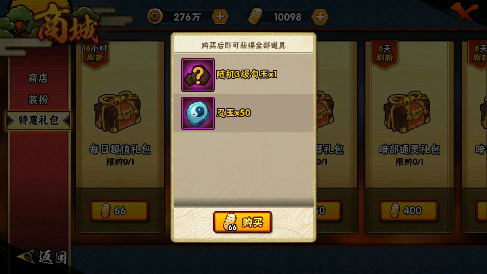 特权礼包,6个3级勾玉480。。。。。特权礼包就是要多花钱买喽