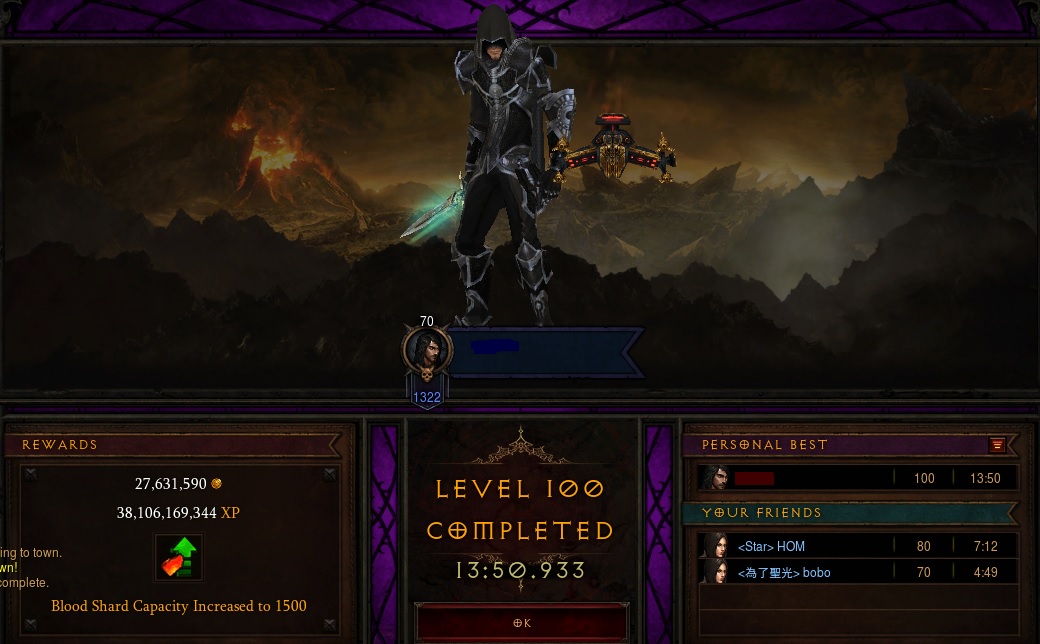 把肩膀换成了有范围伤和CDR的,戒指换成有暴击的。武器依然是个远古,,不然应该还可以再高2层。