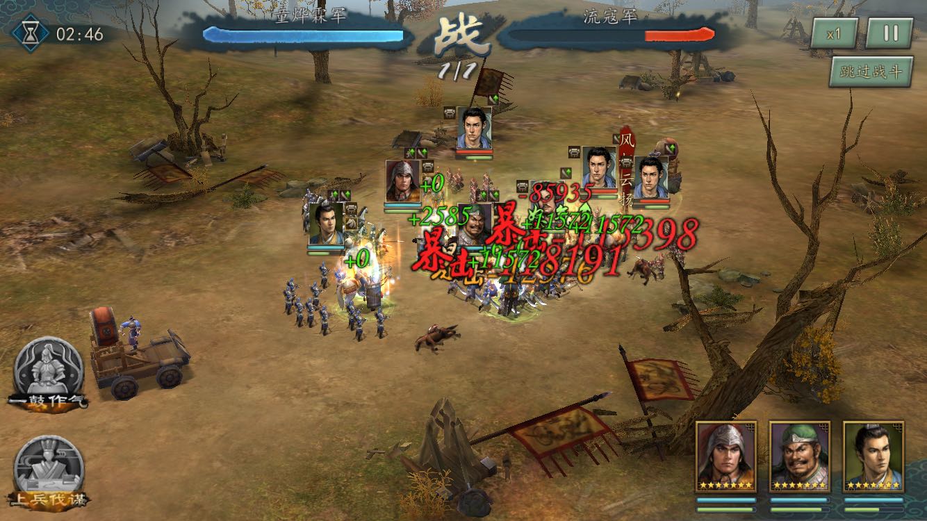 我觉得这个可以看出暴击的效果吧,虽然对面的武将的属性可能有差异,但是注意红字,暴击是11.5,不暴击是8.5W,11.5/8.5=1.35
