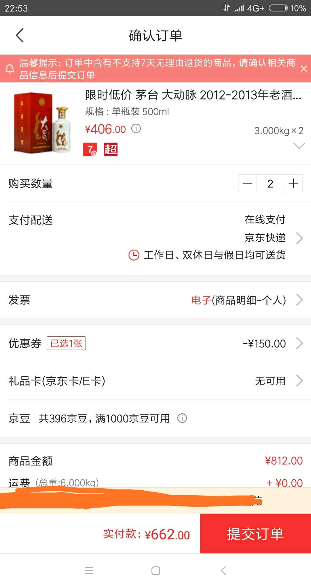 买了出口汾一箱+乳玻汾三瓶+黄盖汾一瓶,再白条减五元,一共446。