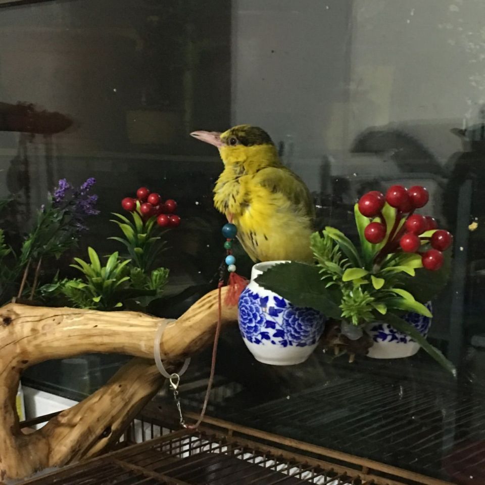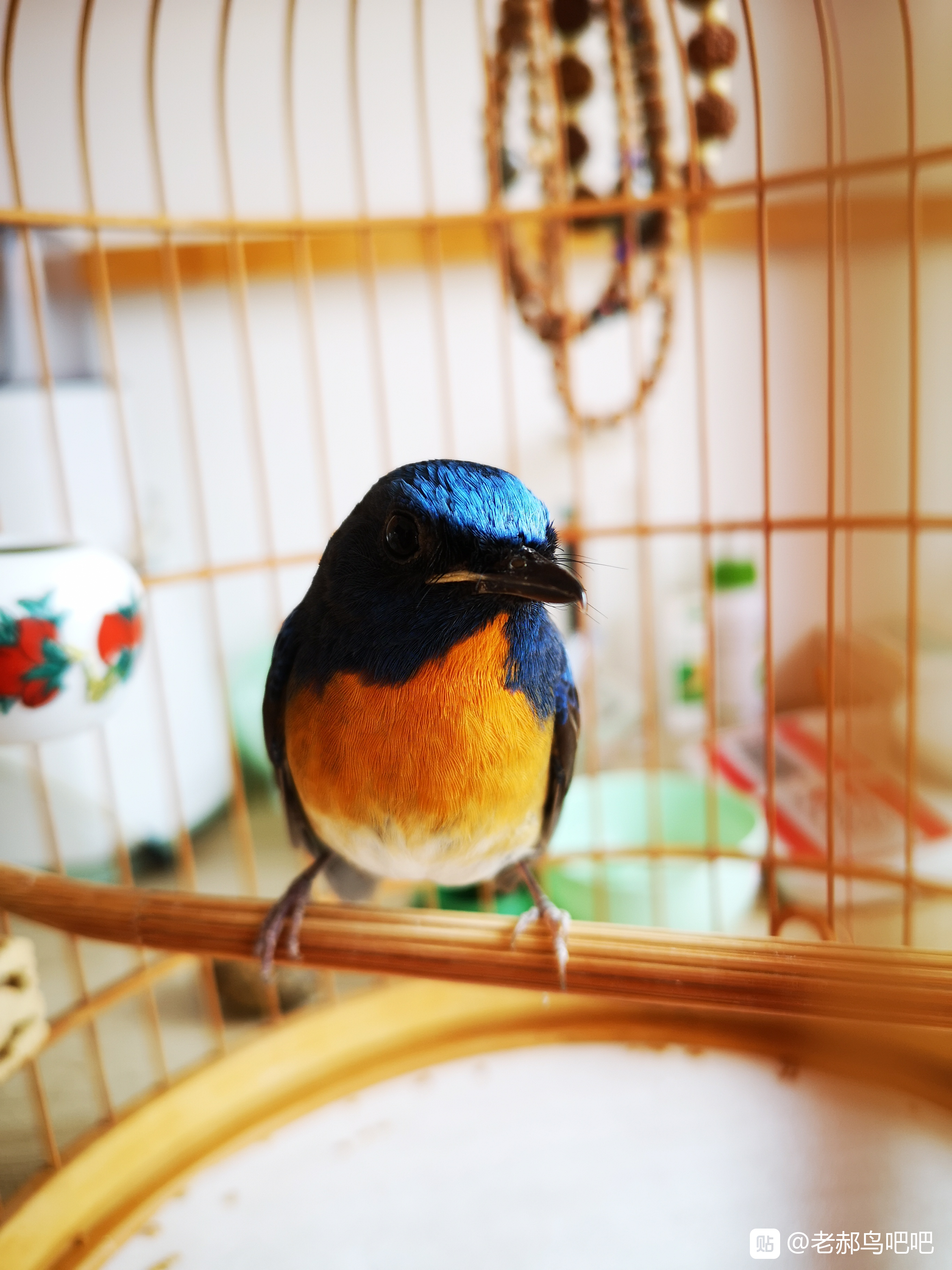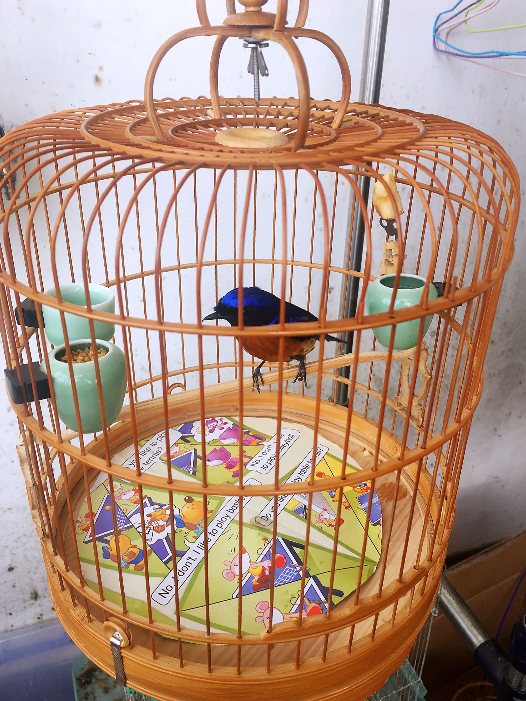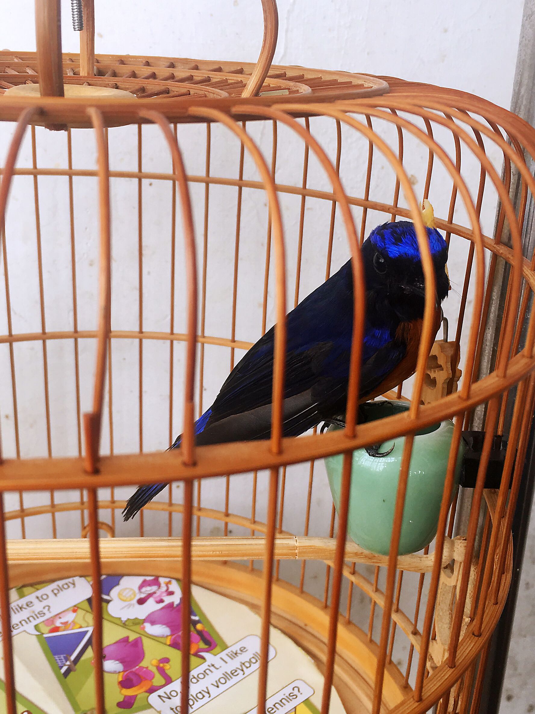 棕腹蓝仙鹟。刚换了新笼子。