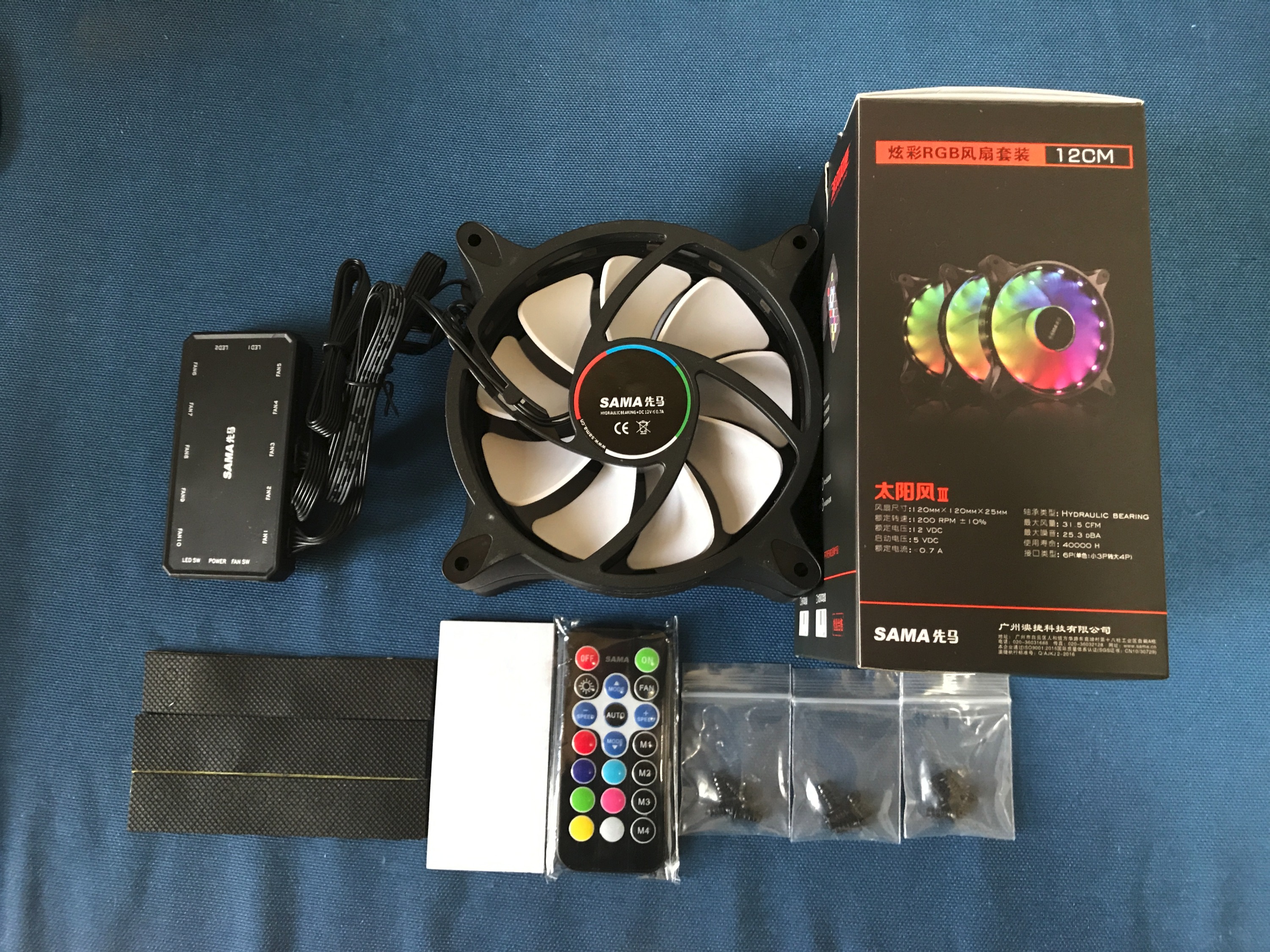 包装上一堆数据个人表示看的不是很明白 其实主要是知道他是12CM的 25MM 厚 接口6P 必须配专用集线器就行了 当然这也是我个人认为