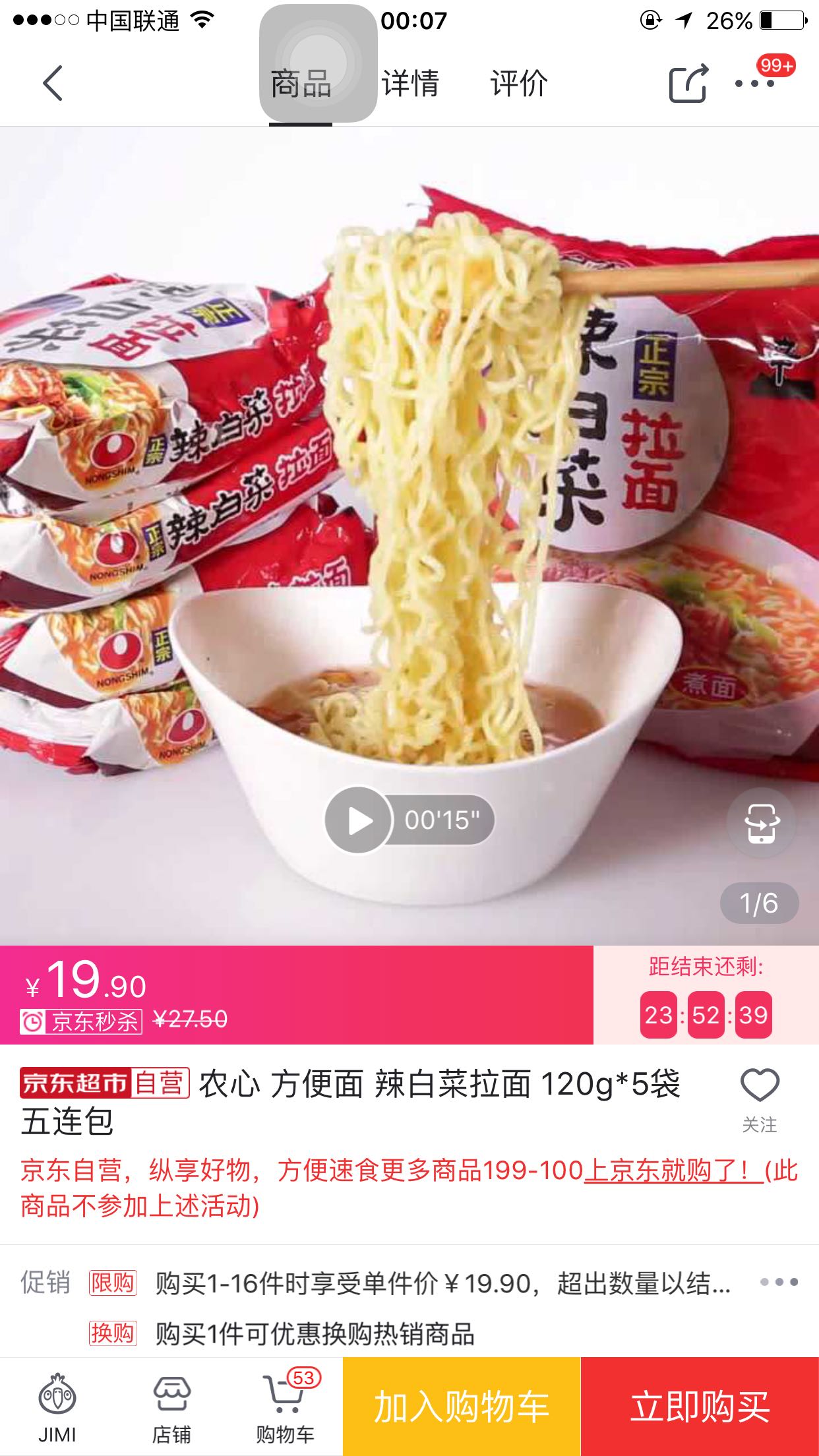 🐶东农心辣白菜五连包19.9秒杀加送一包,用3元签到券+6元免邮券,折下来14/五连包,淘宝最低价21,相当于打66折!