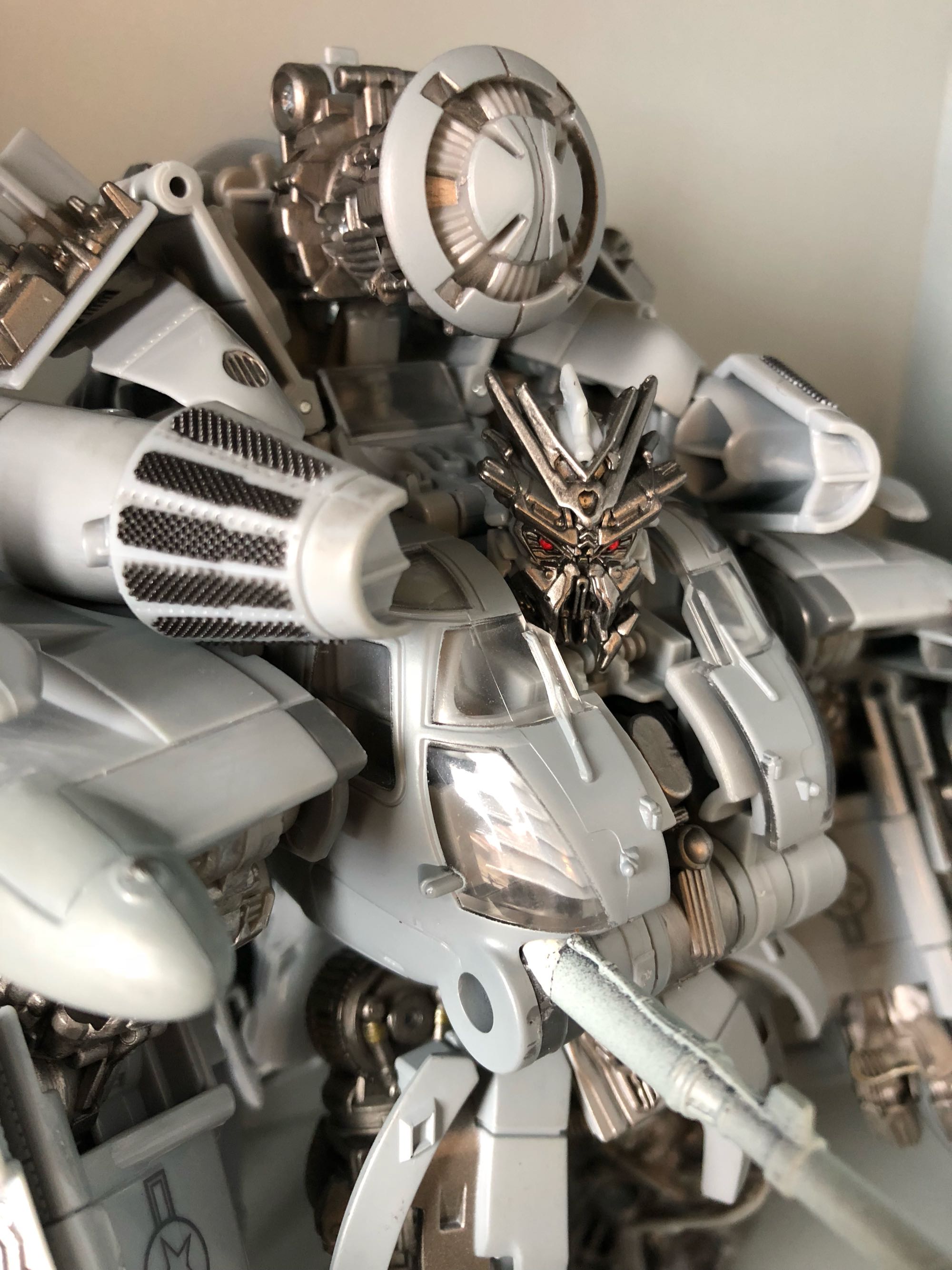 入手许久的钢锁今早终于有空拆来打算过瘾一下,虽然之前已经看过一些把玩测评,但实际到手开盒的时候才发现,这次的钢锁并没有给我开OP和SS那时候的精细感,甚至是令我有一点点的不满意~首先人形方面,整体拍出来是挺好的~身形魁梧细节丰富,涂装也挺有新意,但众所周知的时这货很多地方是齿轮关节,而胯部的齿轮卡位有点微妙,想挺丁丁站帅气点的话前一格卡位就显得有点直,后一格的话就有点过于挺;想叉开一丢丢双脚的话,正常就是图一那样,但更开一格的话双脚的左右接地又不够,令人非常纠结~