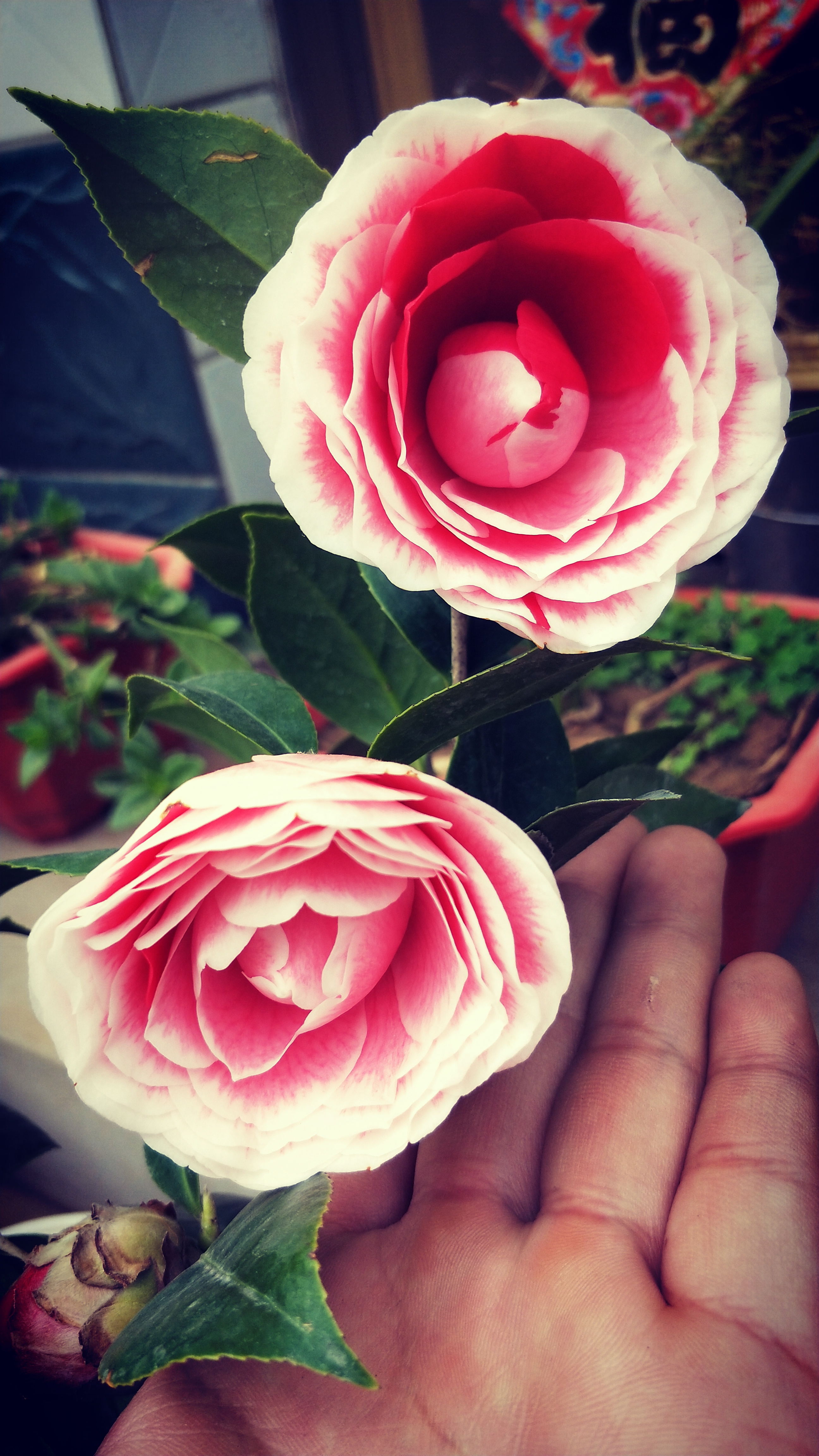 目前开了两个大的。还有不少花骨朵
