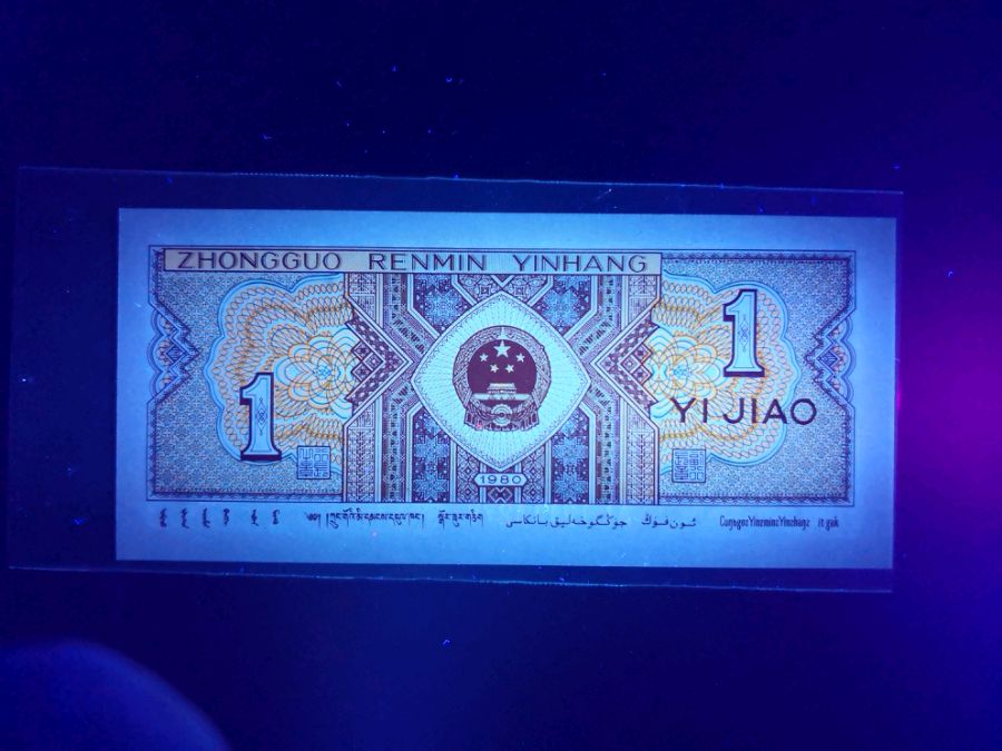 听说四版有行情,赶紧把自己那几张荧光币翻出来看看,突然发现365uv灯+华为mate10拍荧光照很轻松,比以前方便多了,不用调参数,直接拍就好了