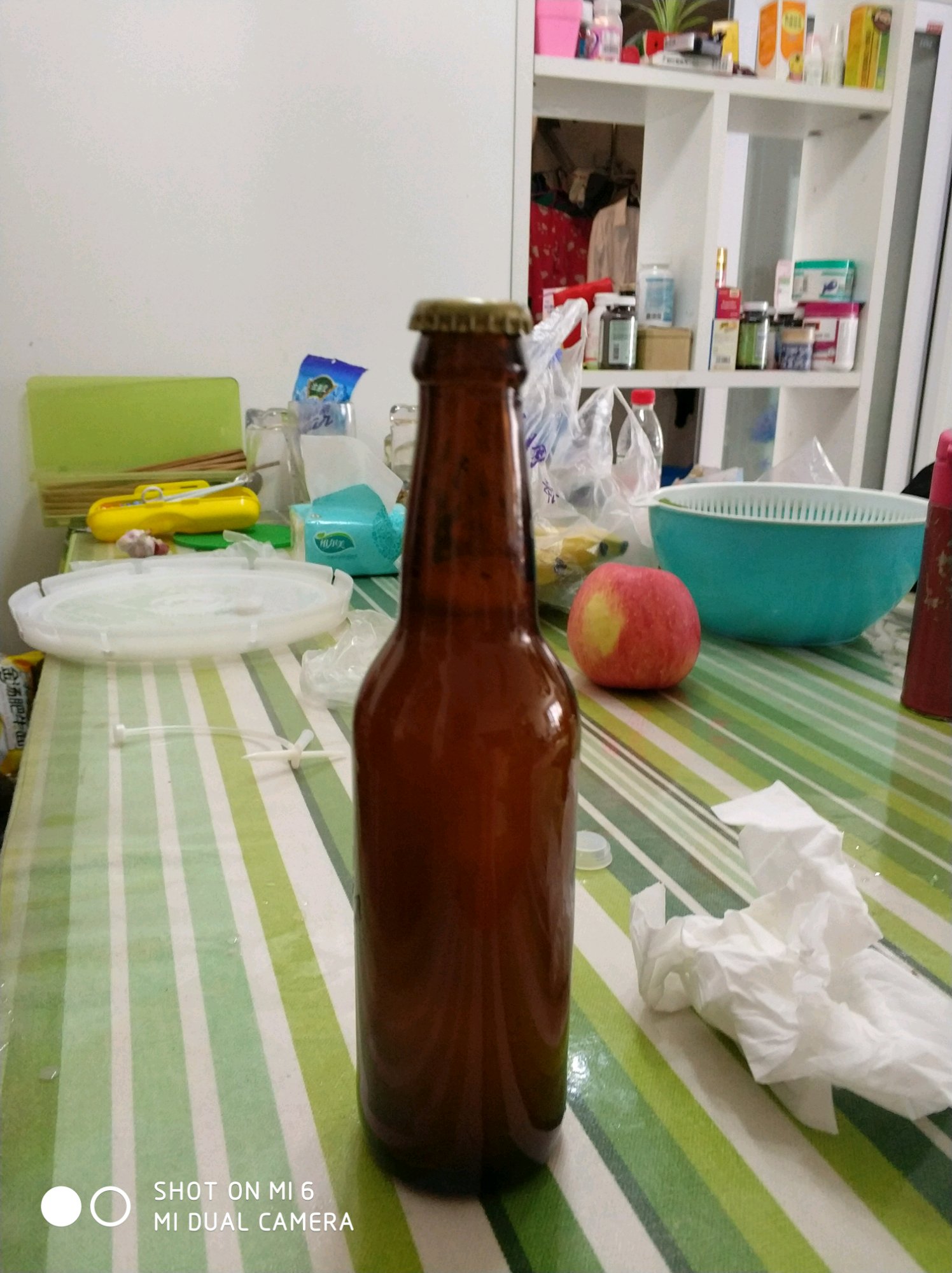 第一次做啤酒,历时半个月,小麦啤,味道还可以,基本上是按照高大师的配方做的,口感细腻、泡沫丰富,应该是很成功。