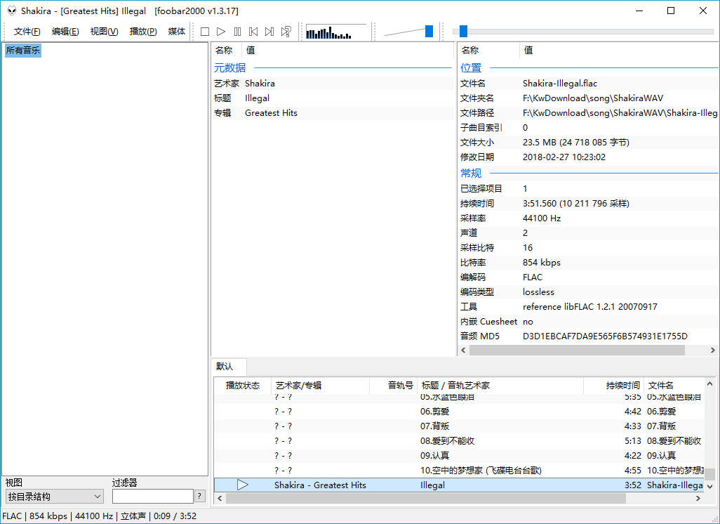 OK,经过以上设置可以放几首歌以解心头对DSD硬解的执念,所谓念念不忘必有回响。