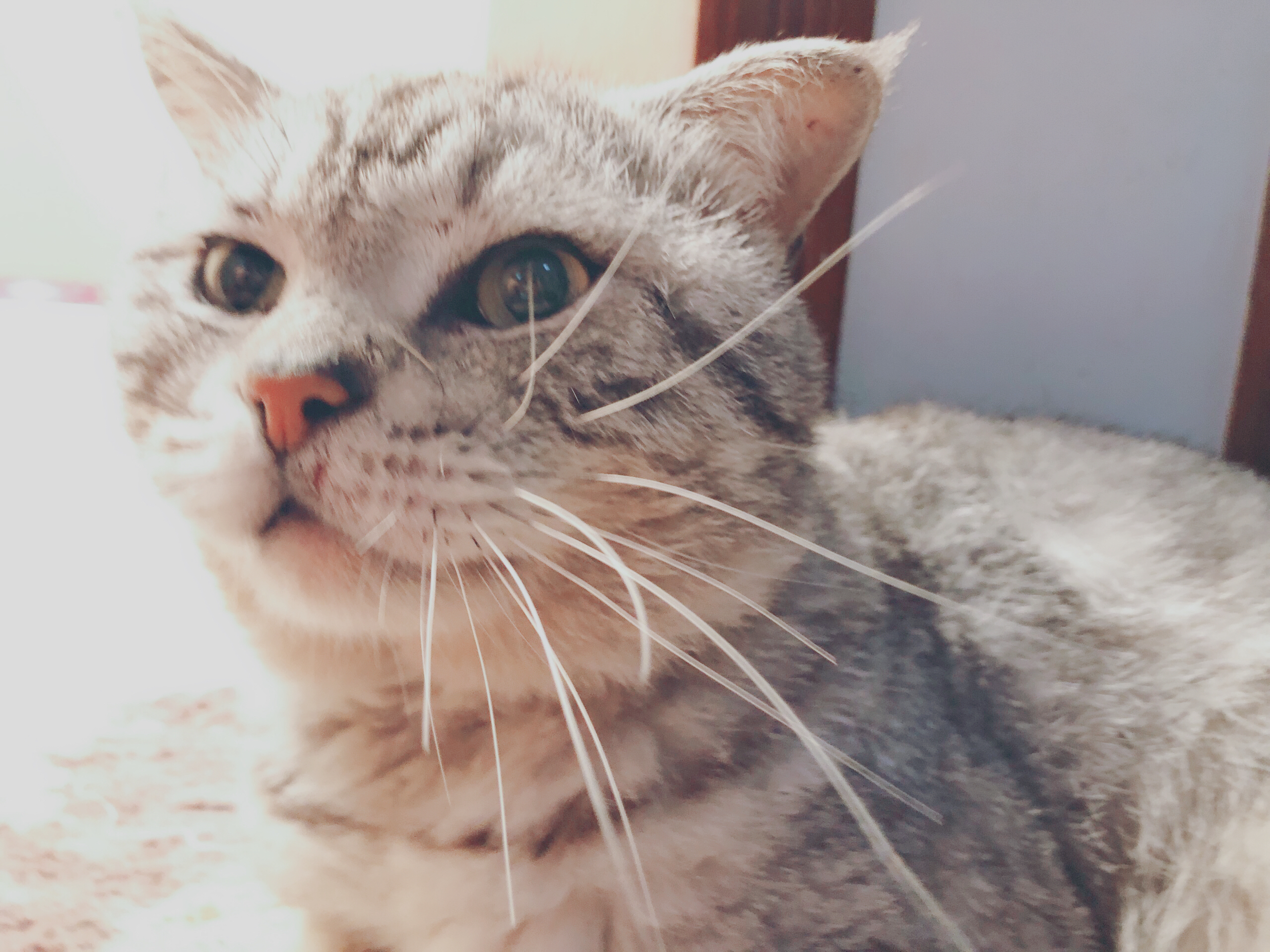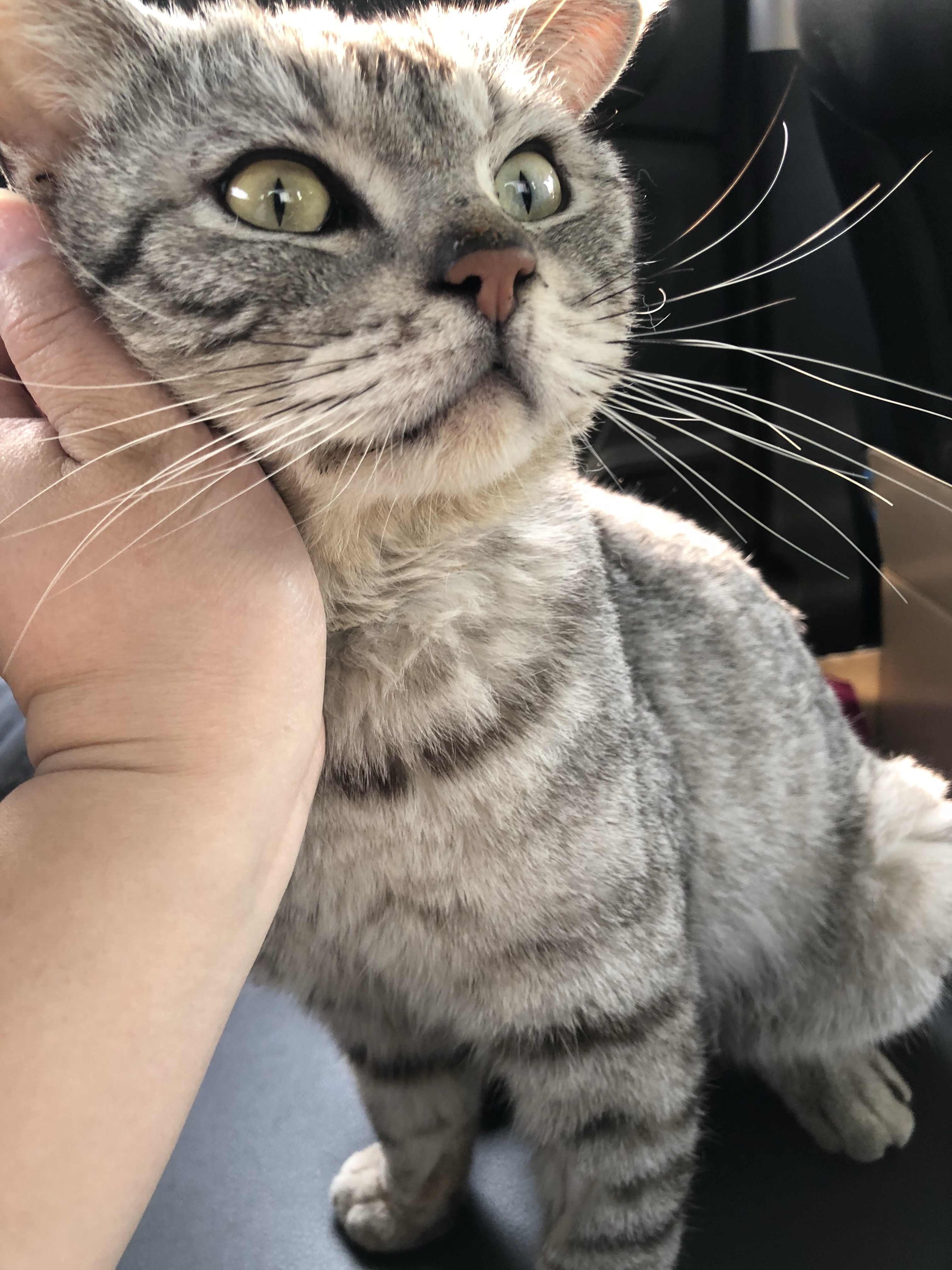 对了,此猫是个男孩纸,胸口的外伤已经结痂,能看出来也可以摸出来,家里有猫的亲不要轻易尝试,此猫对猫极不友好,应该是流浪时收到的创伤,但对人超级亲热,随意搂抱一点也不嫌弃