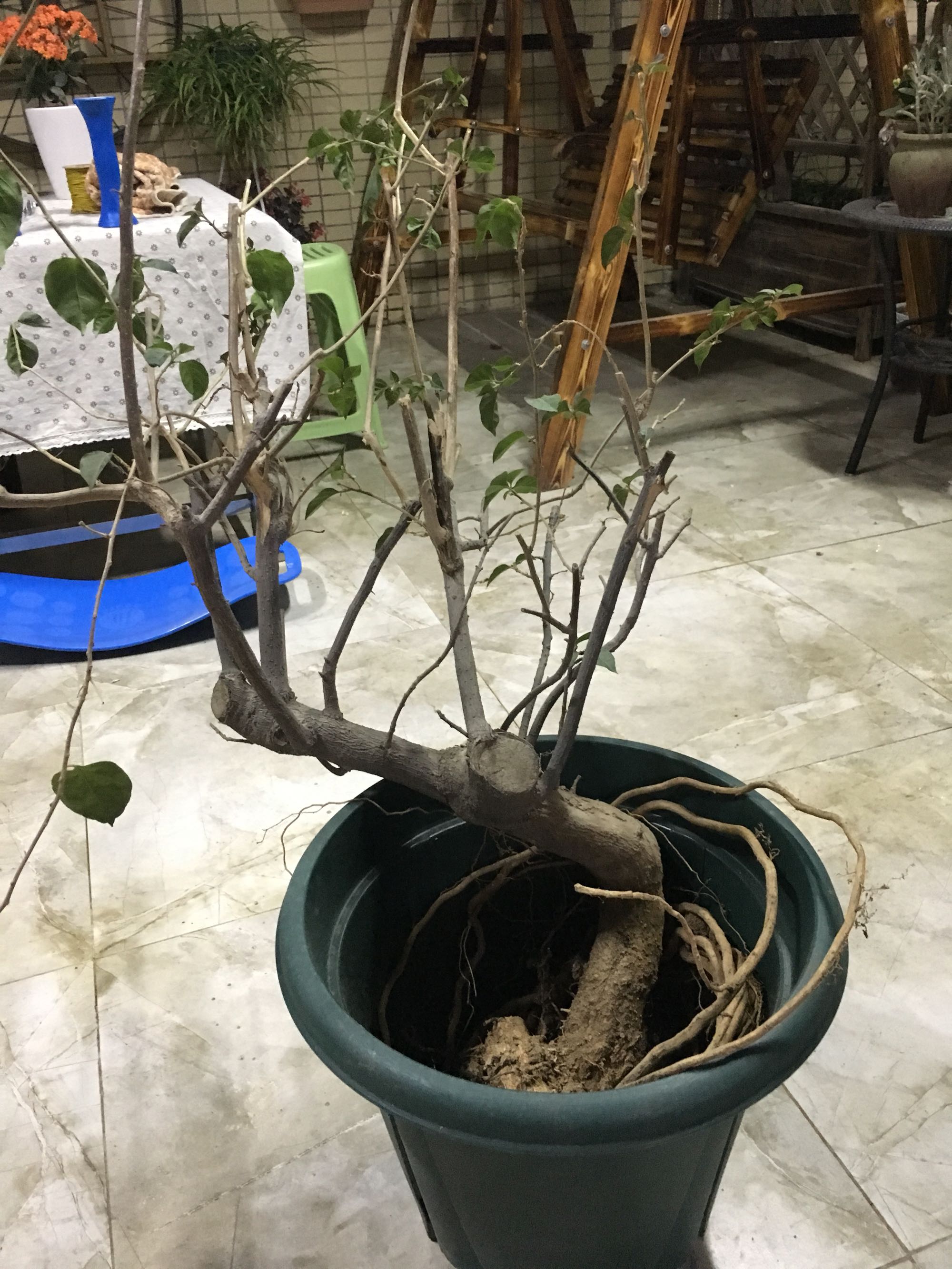 急救!邻居给我一颗种了几年的三角梅!很久没有浇水了!换盆时,