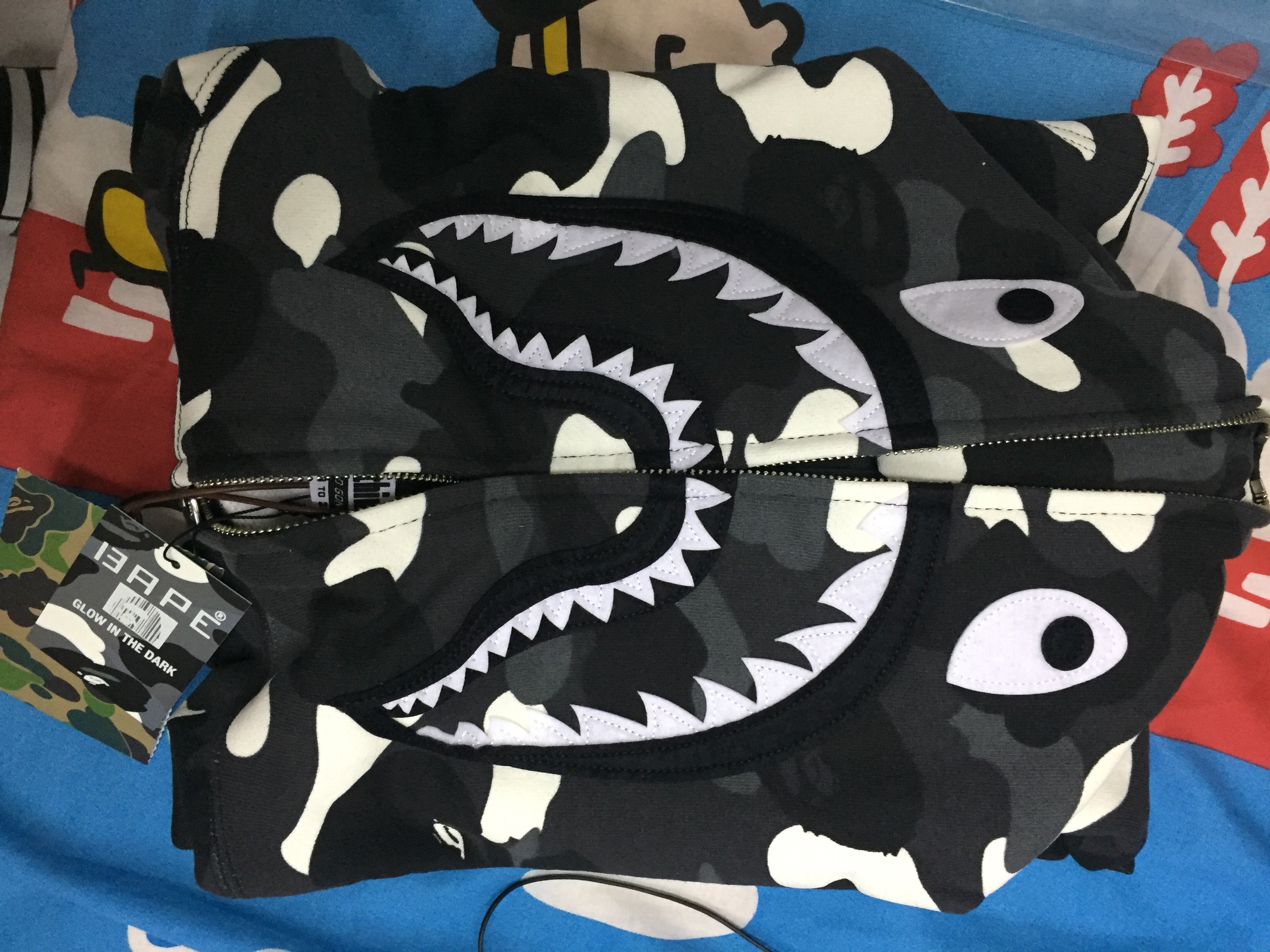 【BAPE】求鉴定夜光鲨 袋子怎么跟短袖的不一样?特别是上面