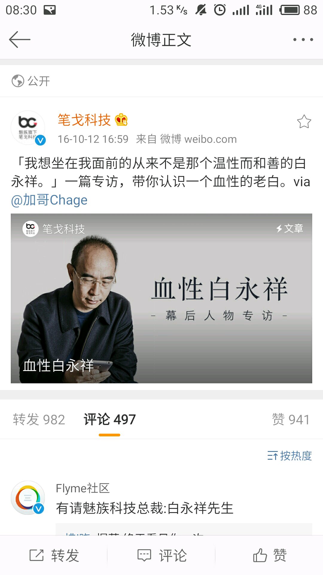 有请魅族科技总裁白永祥先生