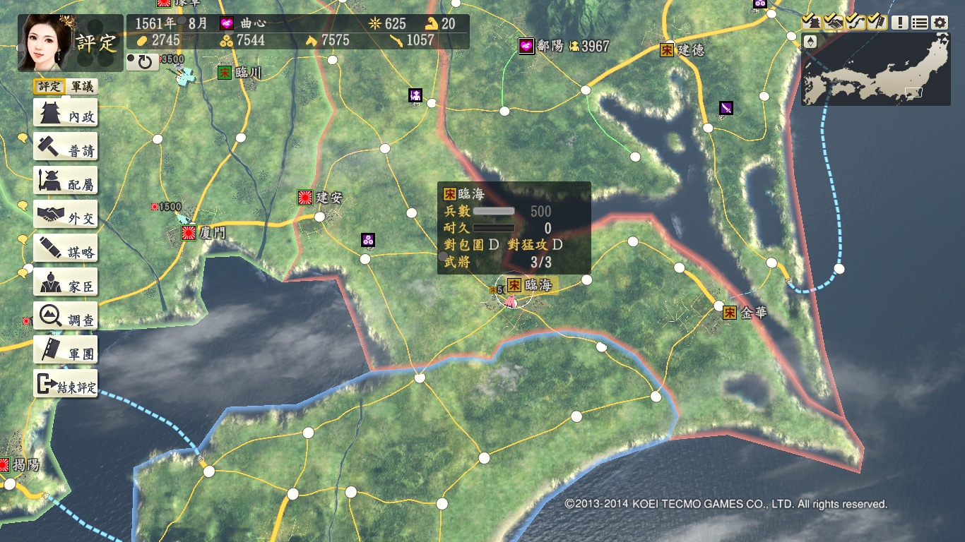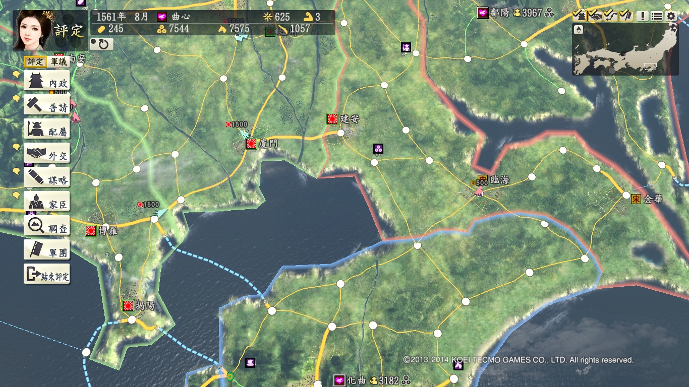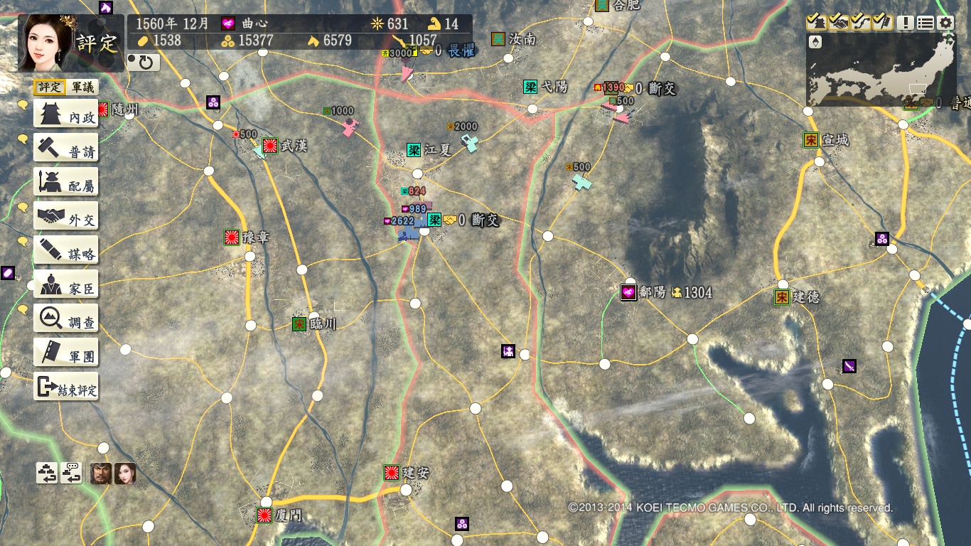 首先说说本地图:超级难度下有2大BOSS,织田和清朝,而且电脑扩张急剧变态,要靠外交和朝廷破局,开始和卑弥呼有停战期,先灭南明,能抢了江夏最好,再灭刘宋,靠卑弥呼顶住西边压力。