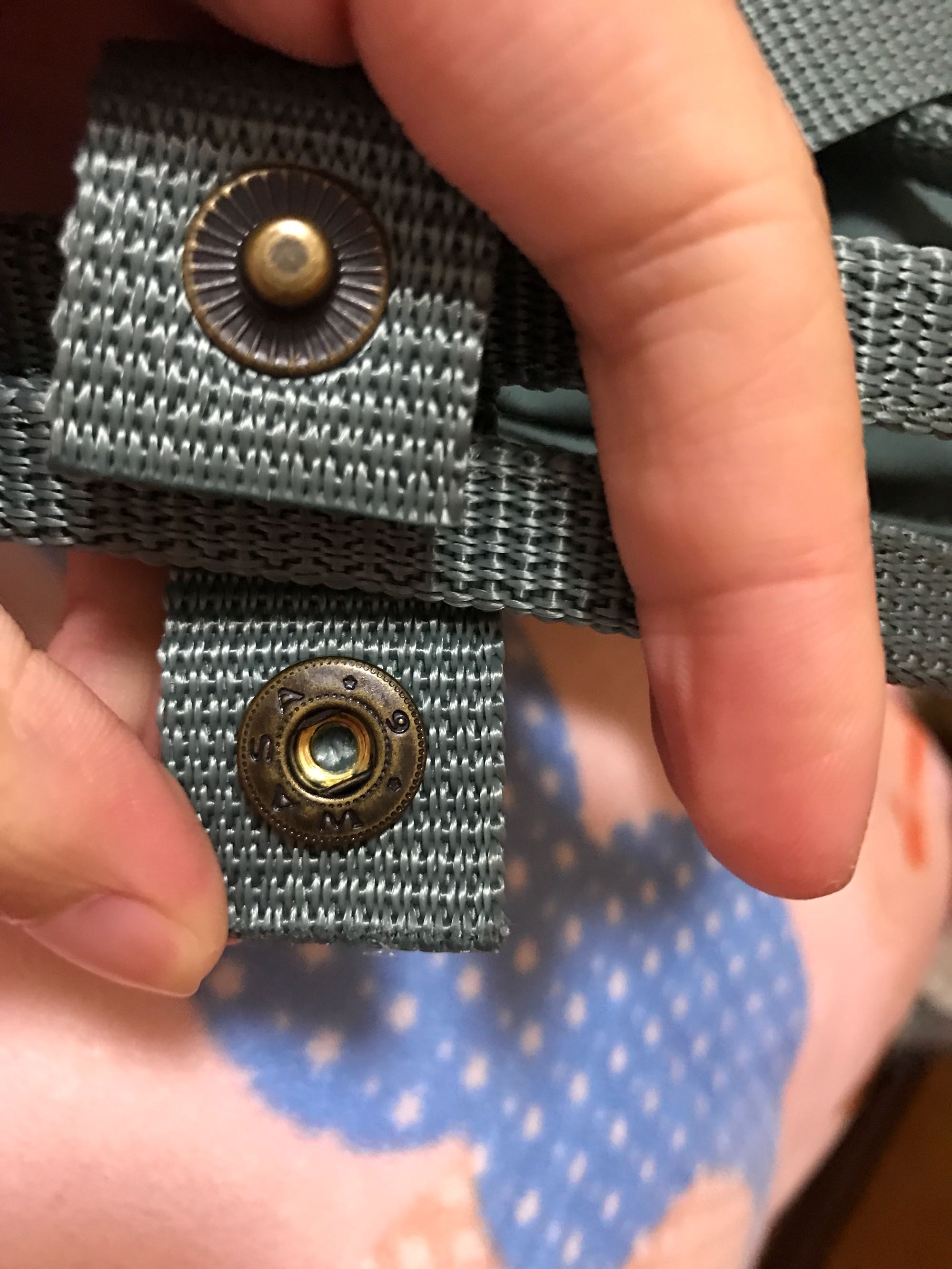 回复 珍珠多一点 :正品,扣子正面狐狸耳朵尖尖没有弧度,眼睛明显。反面可以看见背带底纹颜色一致。以上三个扣子一样