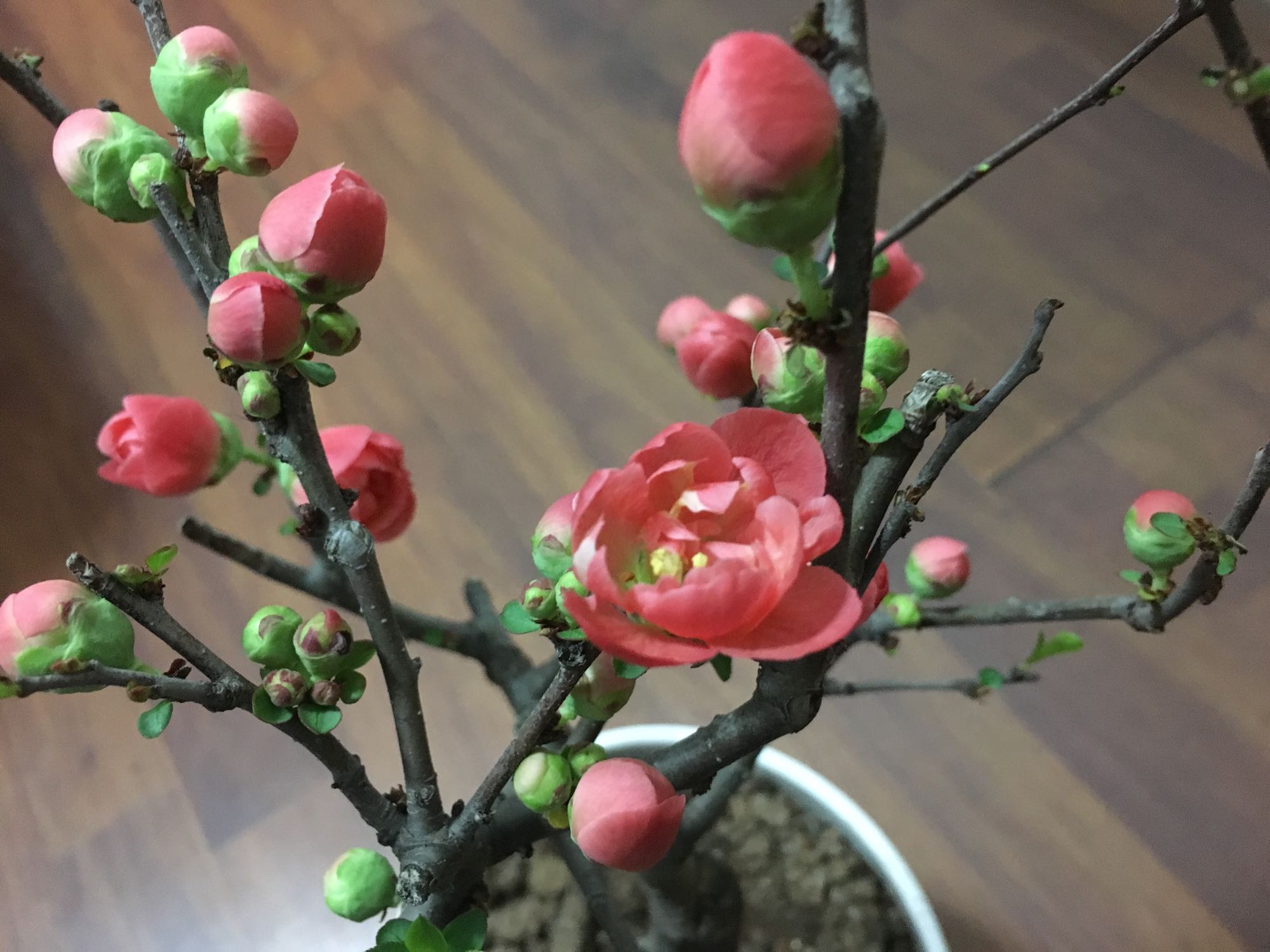 大神们帮我看看这个是长寿冠海棠吗?图一是店家图片图二图三是开花后我拍的,颜色明显不对…这是为什么呢新手也不认识这个是什么…为什么颜色是偏粉色不是大红呢,瞬间就觉得没有红色高大上