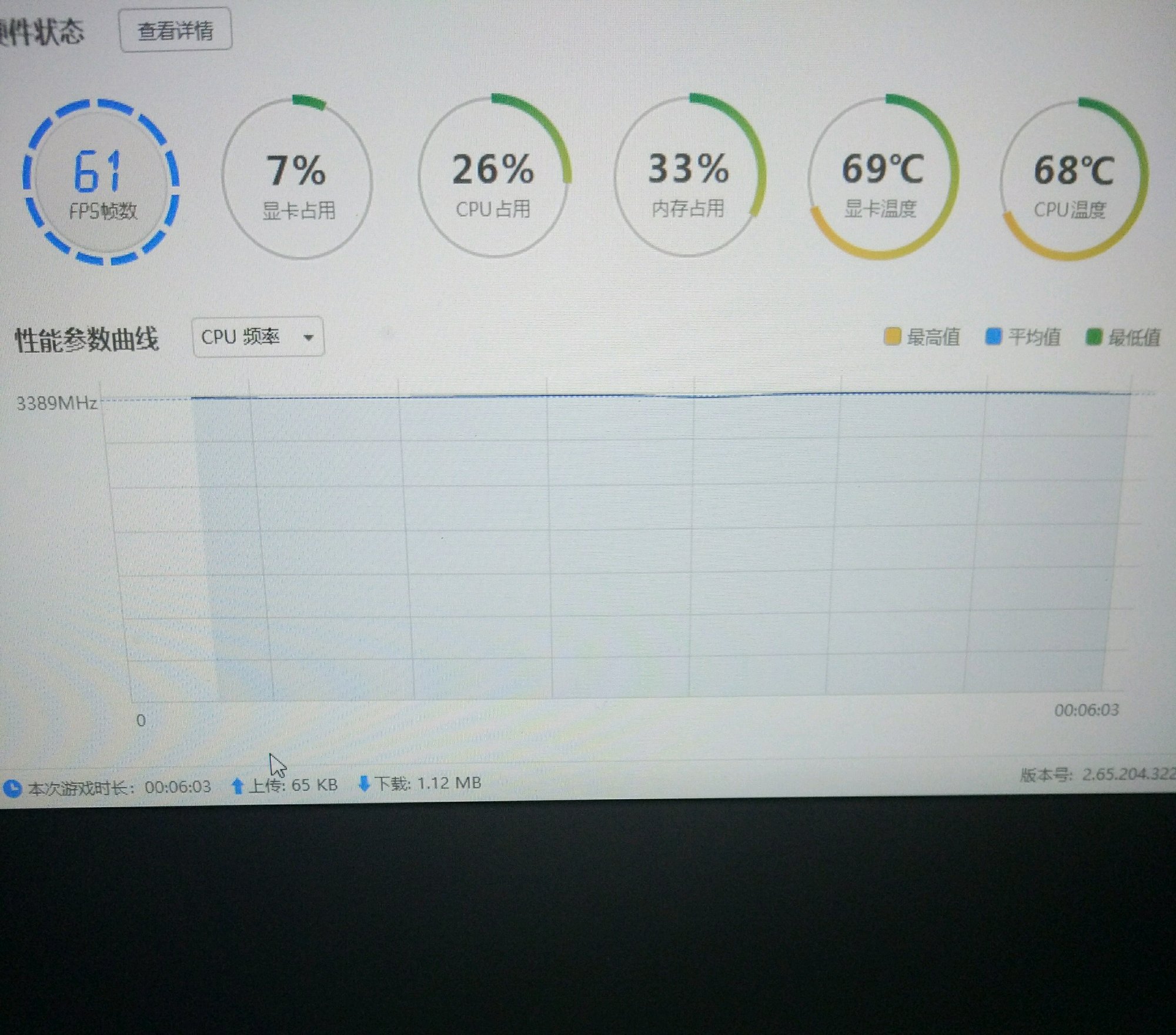 开了高性能,不开游戏在cpu在3.2左右,一开就被锁在2.6