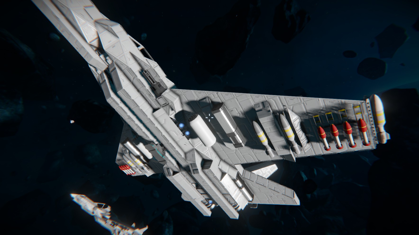 如果你装了CMD武器mod,可选用对舰型号↓搭载了一堆火箭弹和6发鱼雷,以及一对导弹