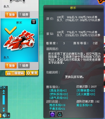 666,09年玩飞车第一台永久车就是积木,后来一直开悍马,直到前几天中了锐速