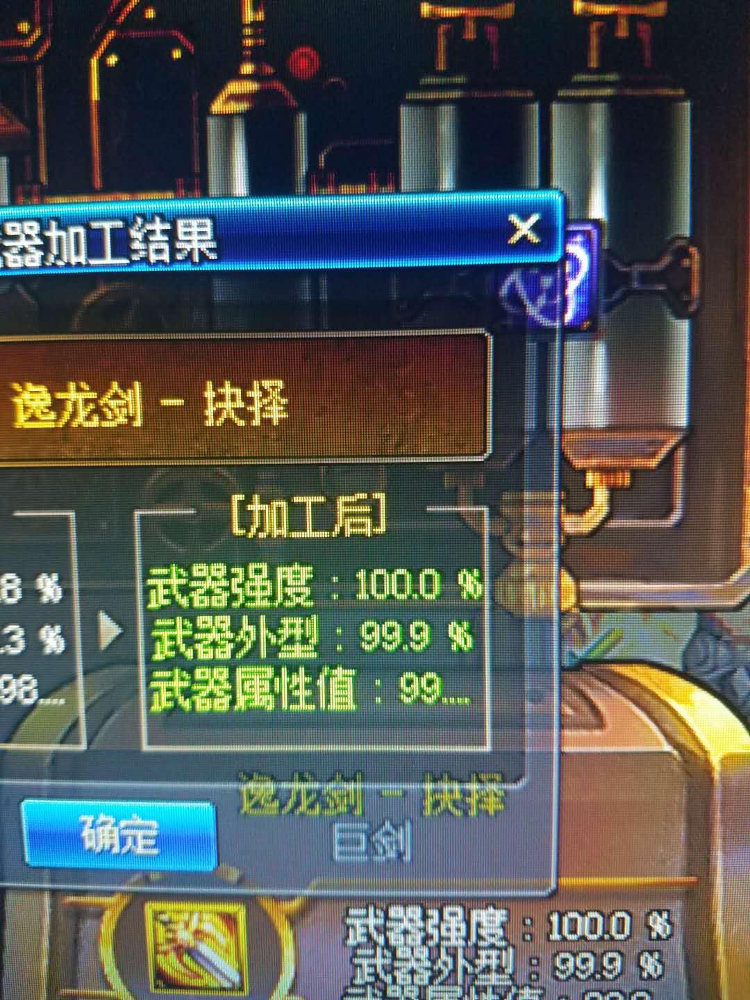 楼主刚发完图片 接着就继续点加工完成。楼主心里美滋滋 能在贴吧骗回复又能把武器做出来