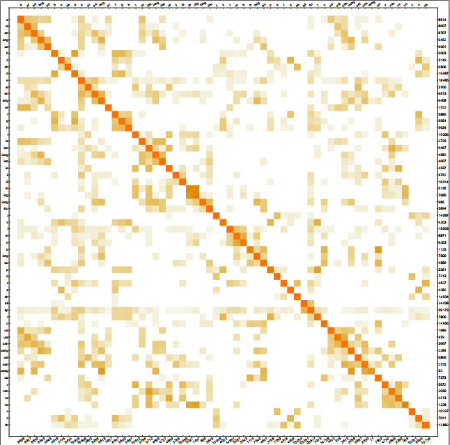 在mma里我试了两个办法 第一个是用DimensionReduce的tsne降维到二维 矩阵变成m*2的矩阵 然后可视化出来观察 到这只能看没有具体度量 另一个是先用Nearest对于矩阵中任何一行,总有另一行与它距离最近,我看下他们的label是不是一样,最后做一个n*n的混淆矩阵图 不过也只能看没数字指标