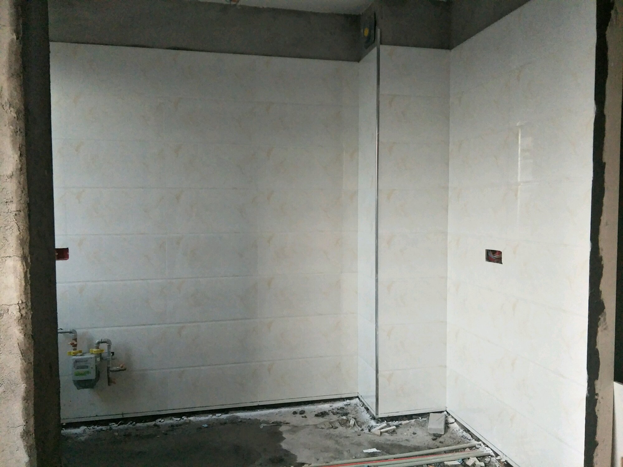 没贴,和厨房平齐