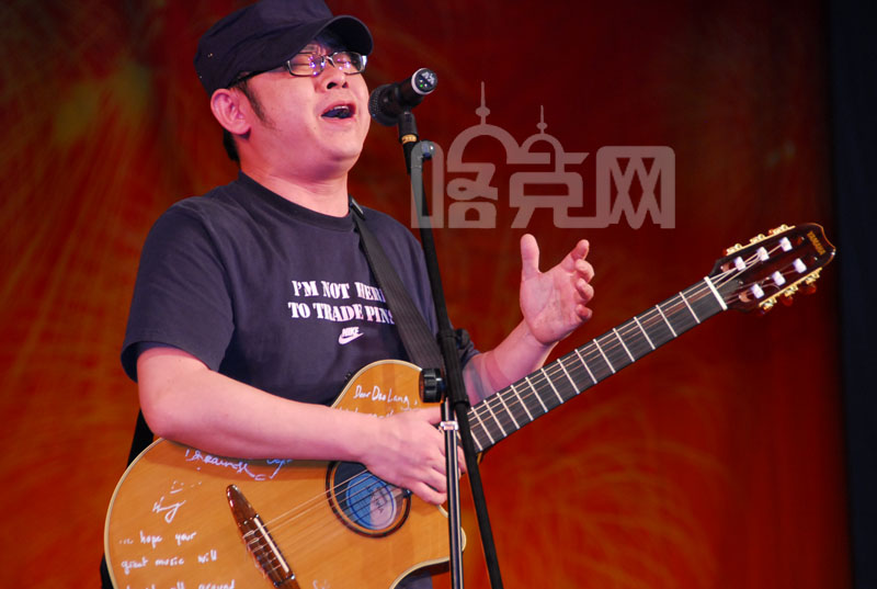 :文化部援疆演出,胖刀抱着吉他。还是键盘玩的溜。