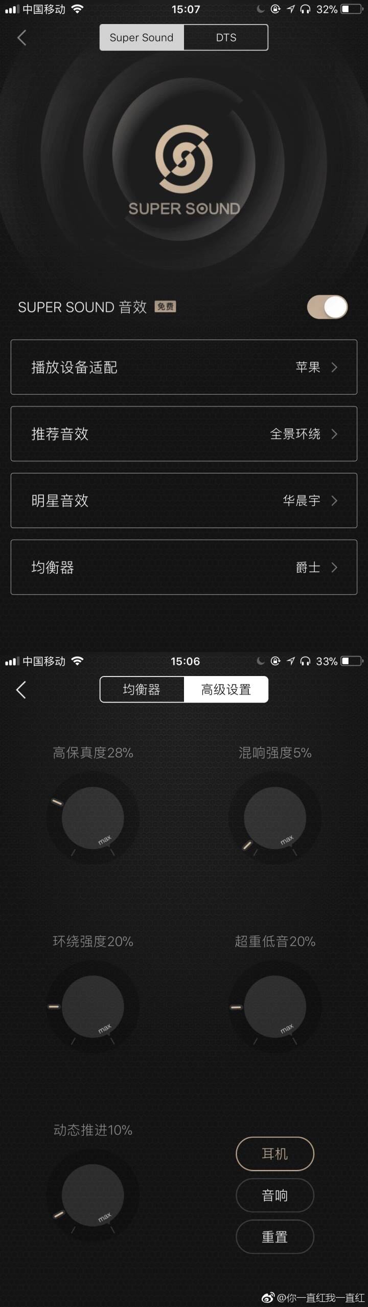 感觉绿钻近场或者前置最爽,开了绿钻听了一段时间,再听普通……呃!差别太大了感觉