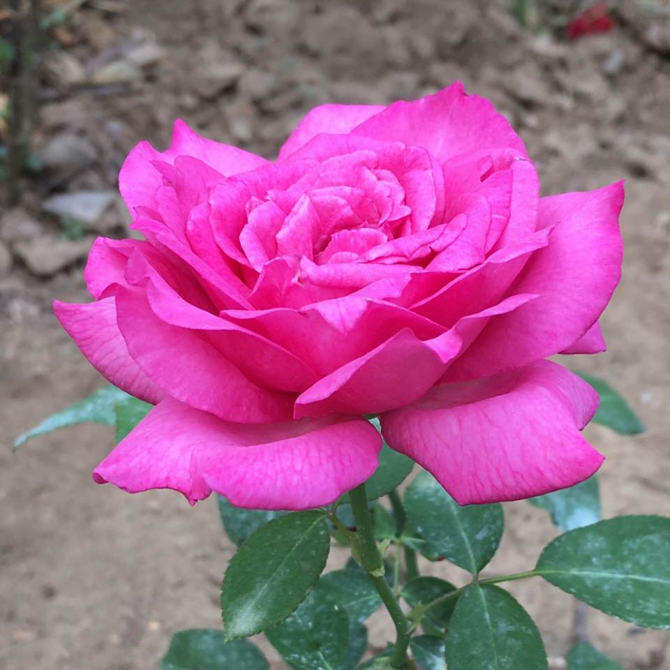胭脂香水花型花色出类拔萃,还带银背,有锯齿边,只是株型差,枝条细长,到藤不藤的,真是**!
