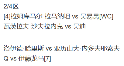 签数:男单32(正赛24+正赛外卡4+资格赛13进4)