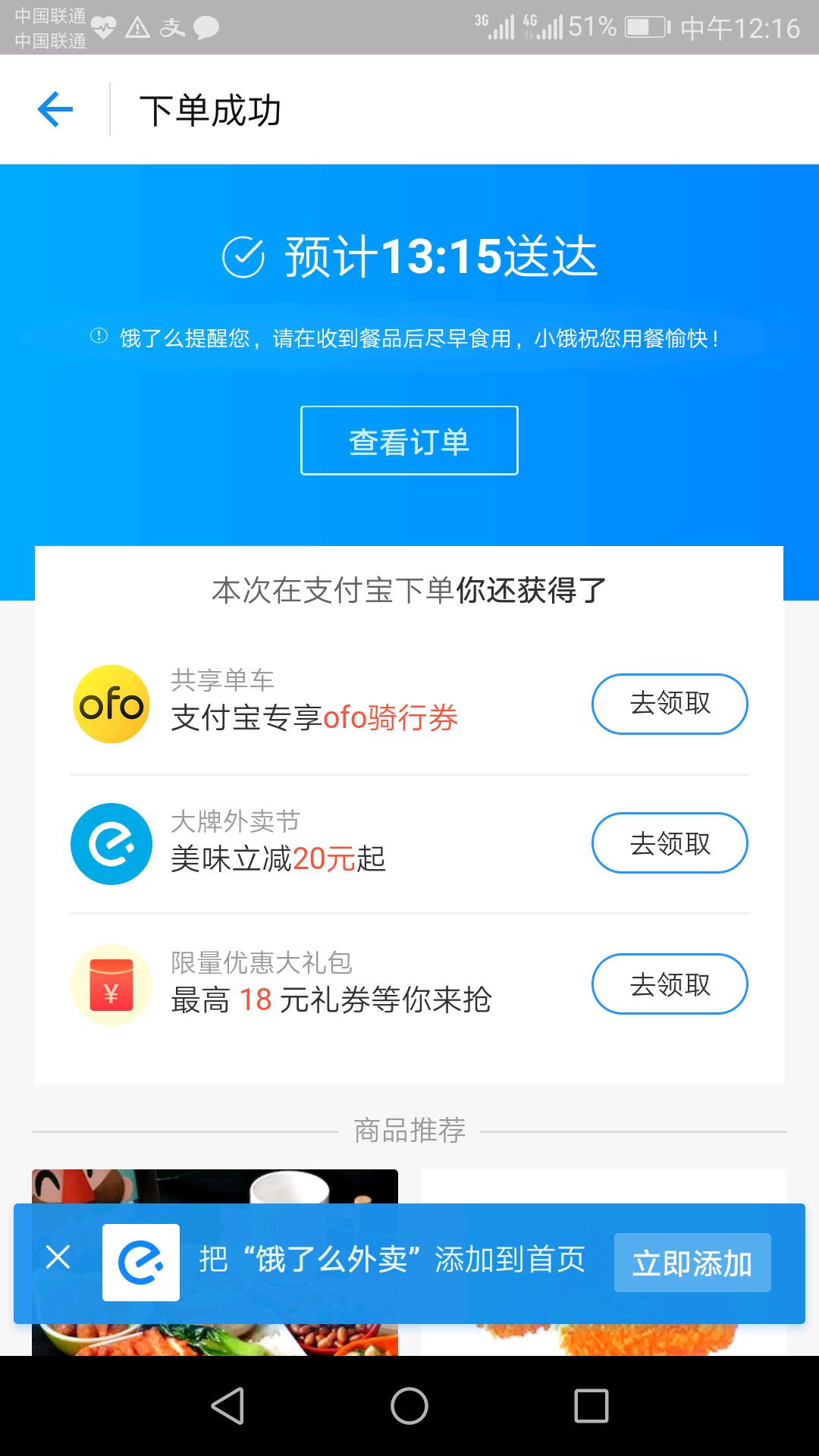 下单了