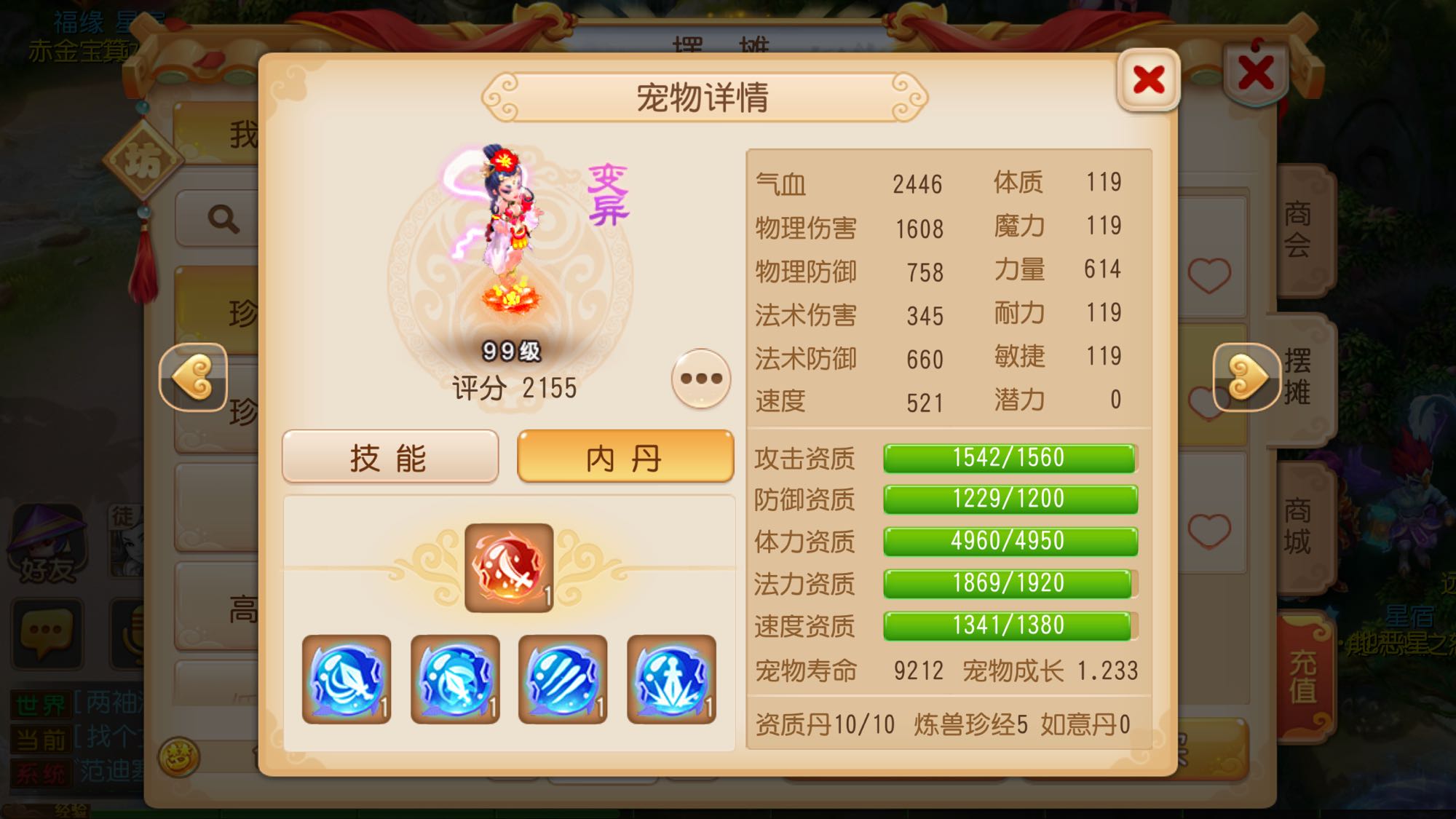 反正我觉得不亏,同技能内胆,资质好一些的变异芙蓉,25万卖的。去年11月,大似水