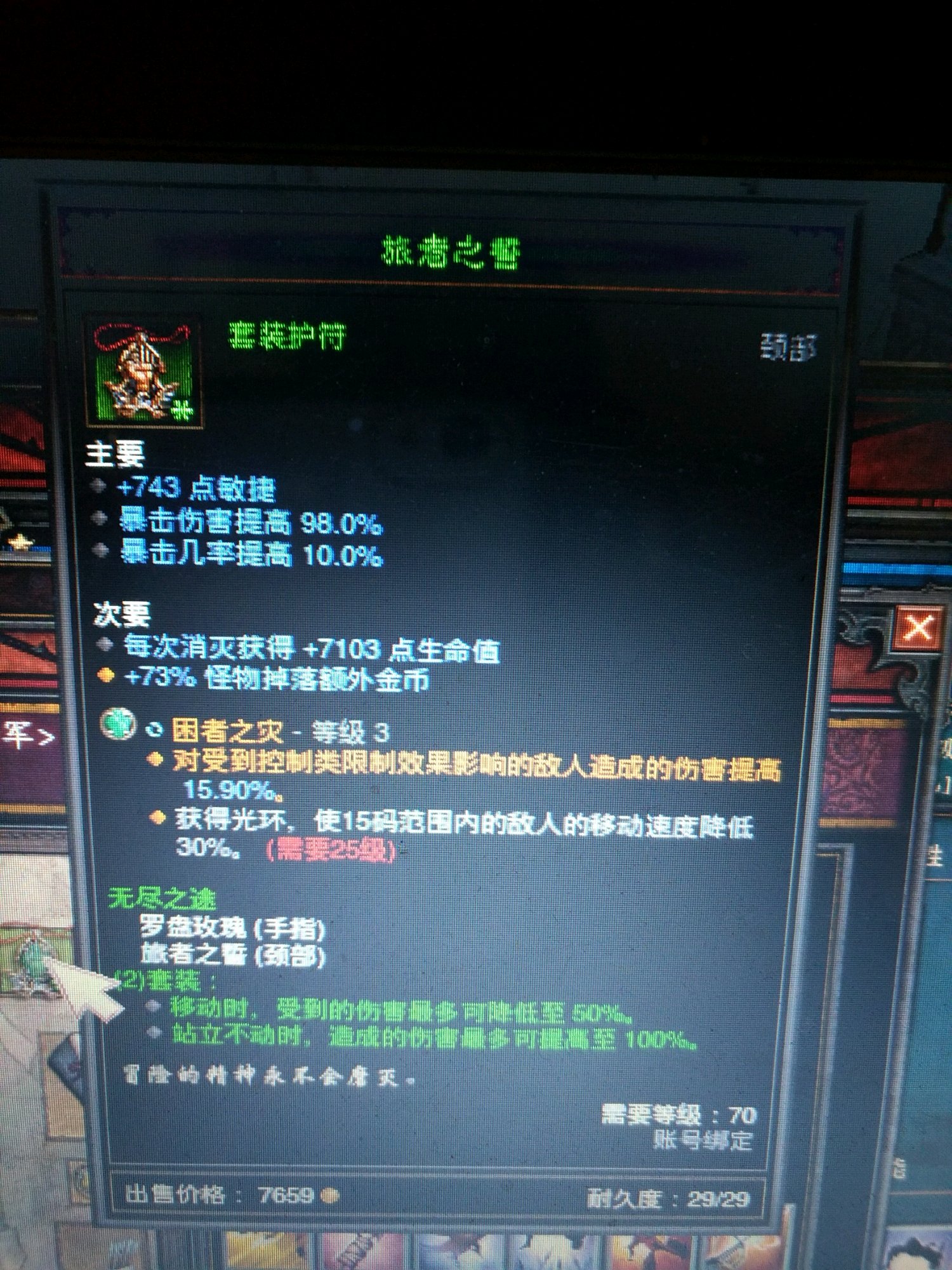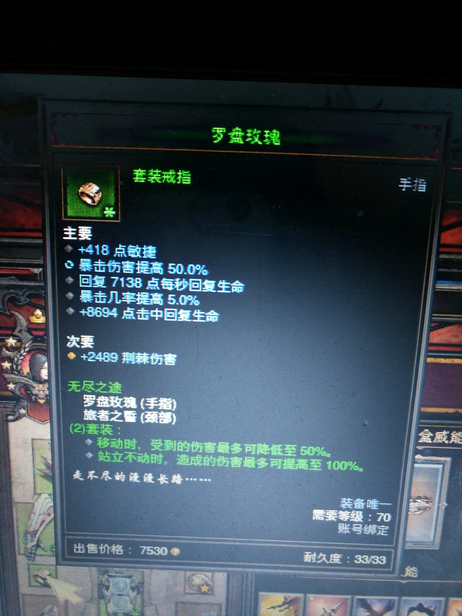 我也是很纳闷,我的掠夺装备已经很不错了,如果我的三刀有这装备早上100层了,三刀就打到97,掠夺就是打不出伤害不知为什么