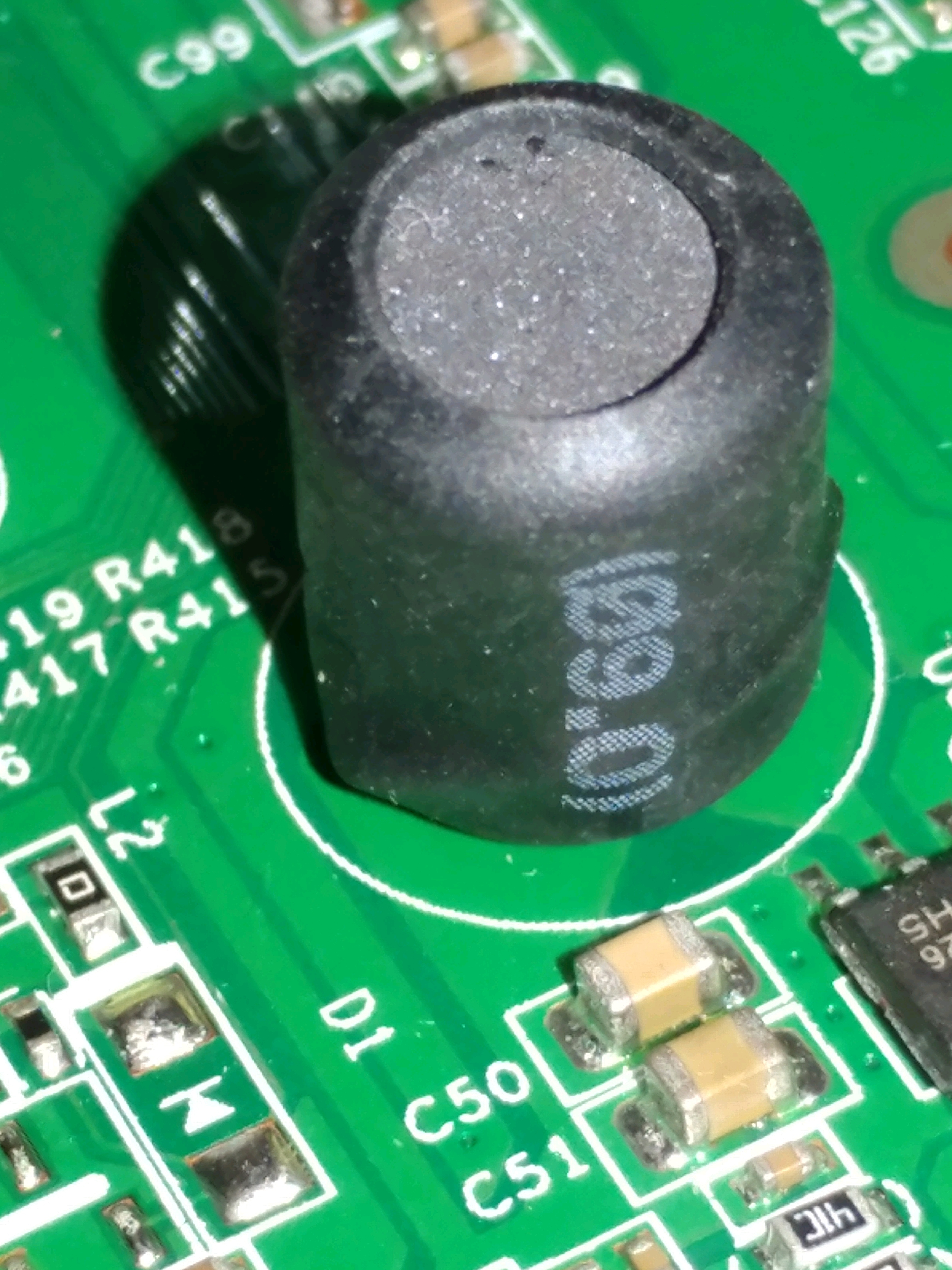 这个是电感,很难得坏的。棕色的是电解电容,这个一般要长期高温会爆。