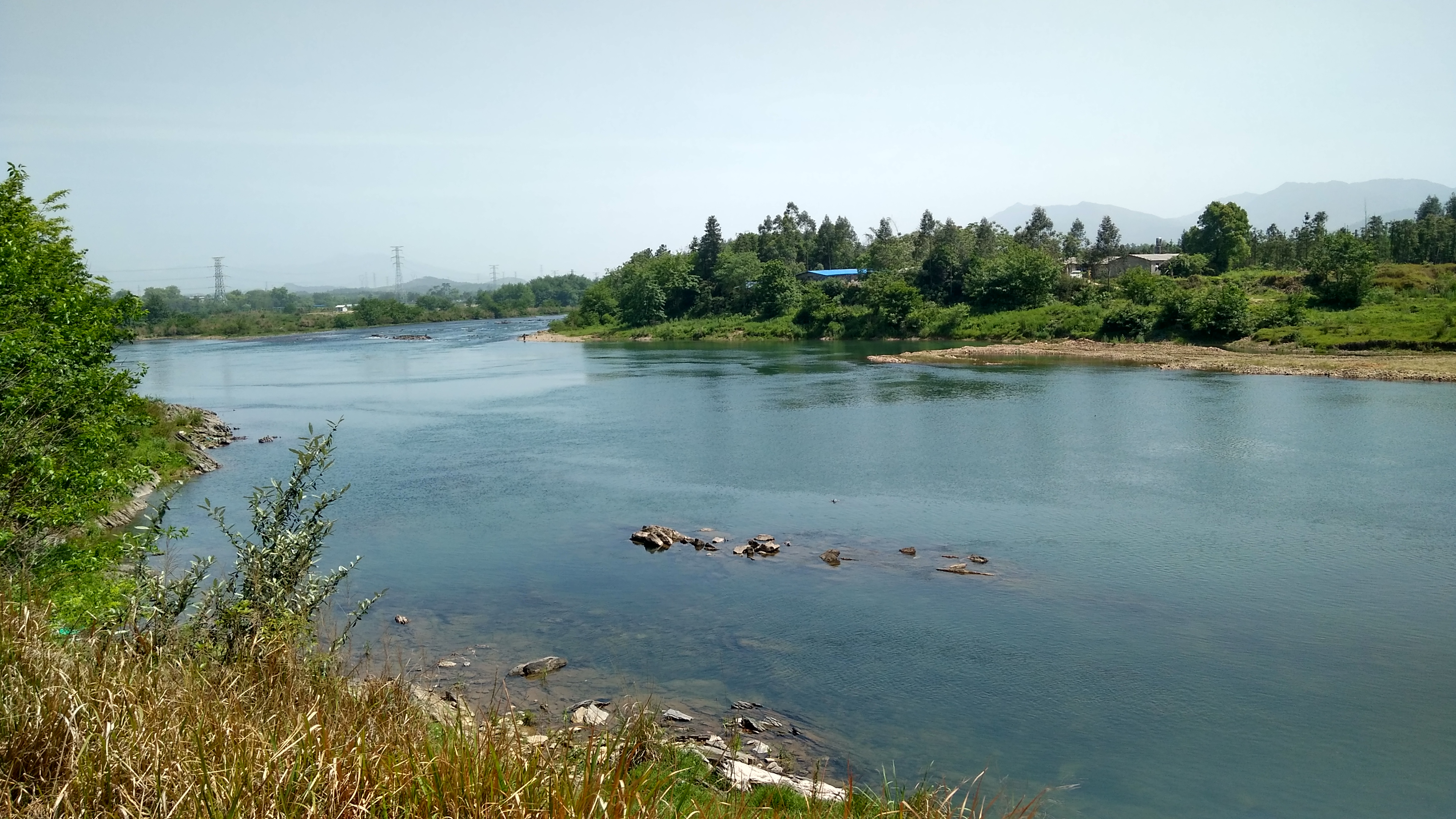 周家岭还是有那么一点坡的 所以需要一点脚力才行 穿过大王村 回到灵川漓江桥 要想继续贴着河边走 必须走军营村 龙奖村 到了中午 来到军营村 询问老乡如何到龙奖村 老乡告诉我必须趟过河 what?