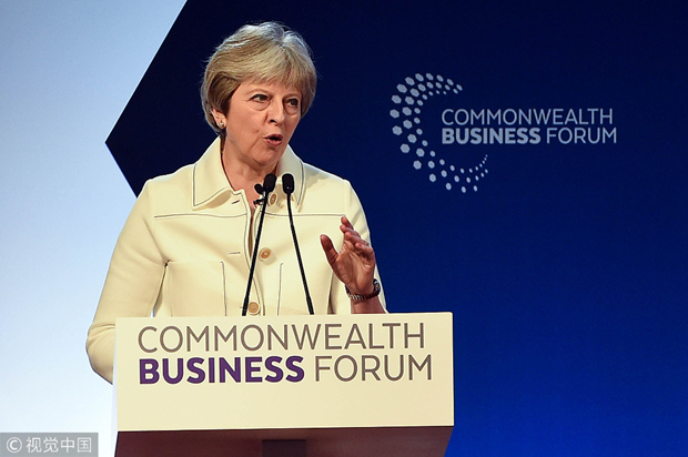 当地时间4月16日,英国首相特蕾莎·梅在英联邦政府首脑会议上讲话 @视觉中国