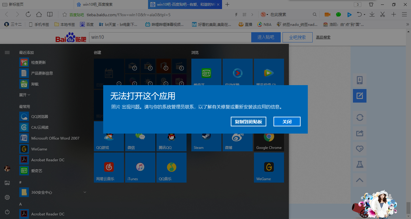 求解,最近一次更新后,win10自带系统全都无法打开