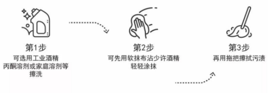 焦油、蜡笔、口红、鞋油、墨水、指甲油,可选择用工业酒精、丙酮溶剂或家庭溶剂等擦洗。可先用软抹布沾少许酒精轻轻涂抹,再用拖把擦拭污渍。